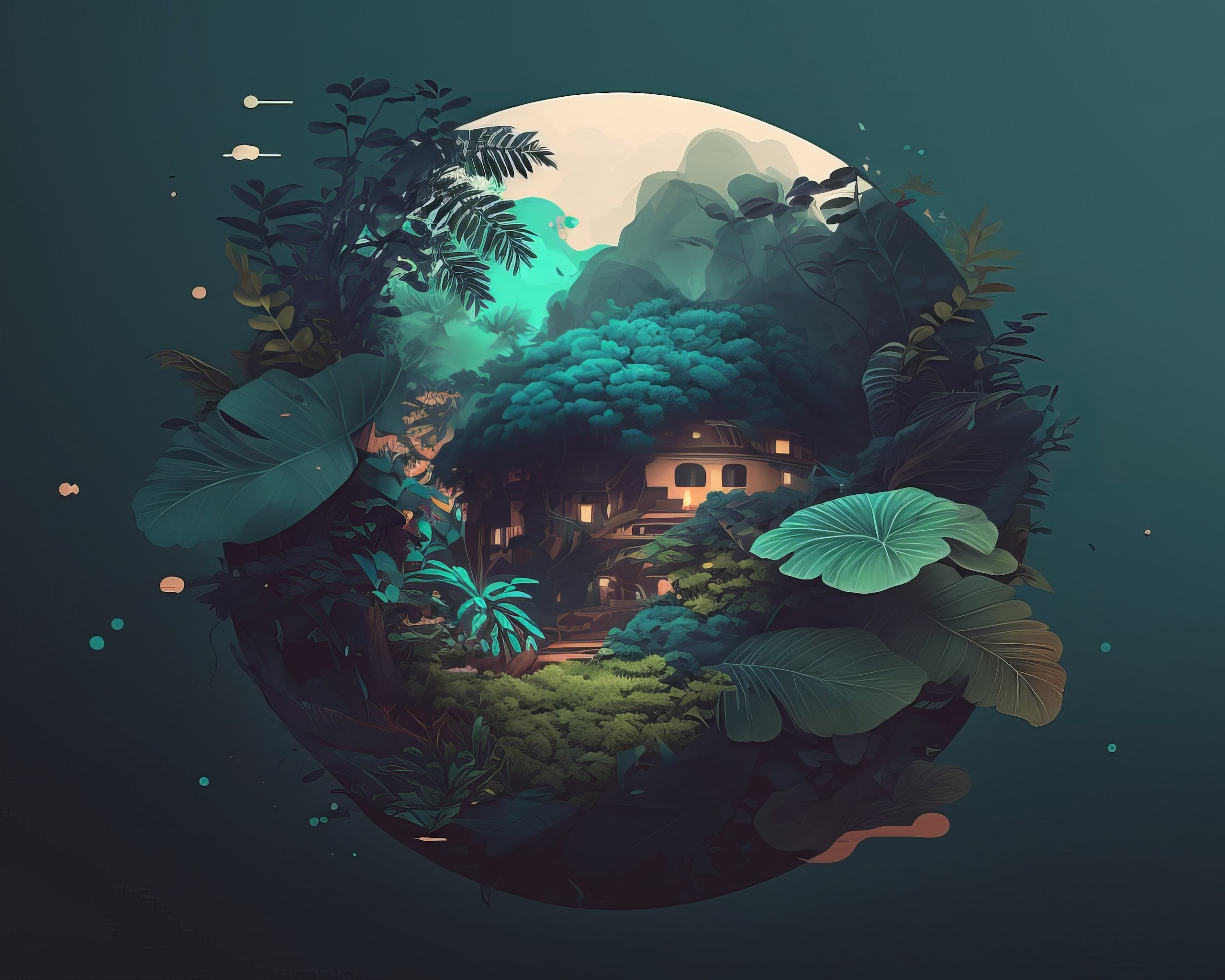 Illustration, Simple Background, Minimalism, Leaves, Orb 4K Wallpaper Background with a maximum resolution of 4579x2616 px.