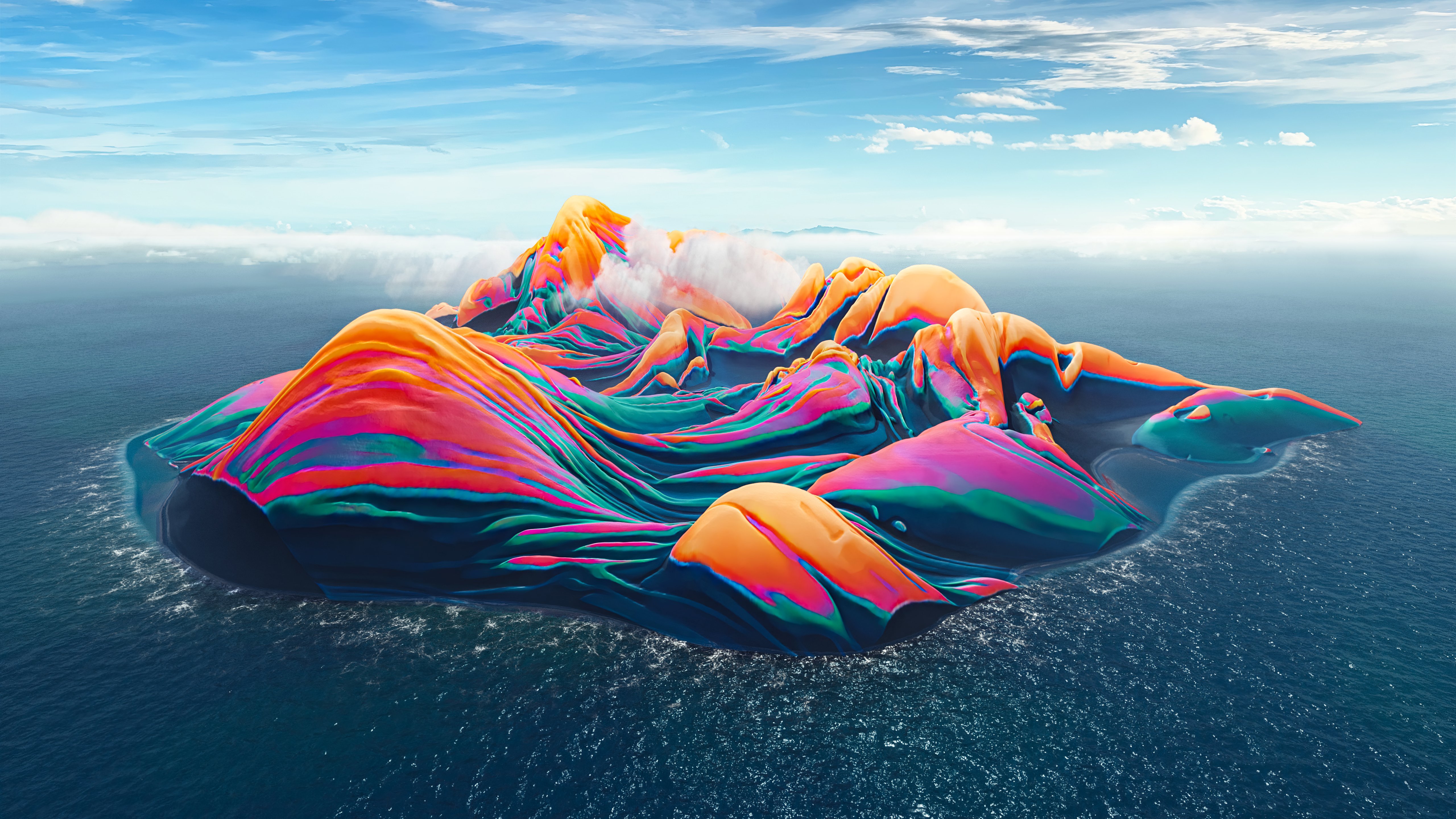Island, Artwork, Abstract, 3D Abstract, Iridescent 5K Desktop Wallpaper
