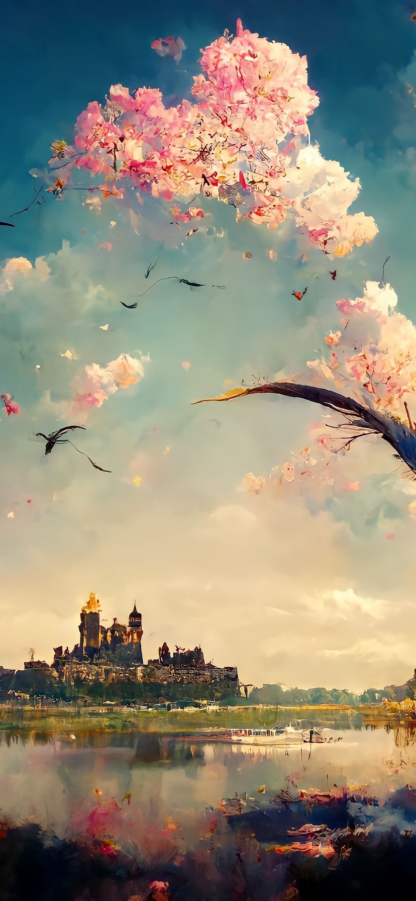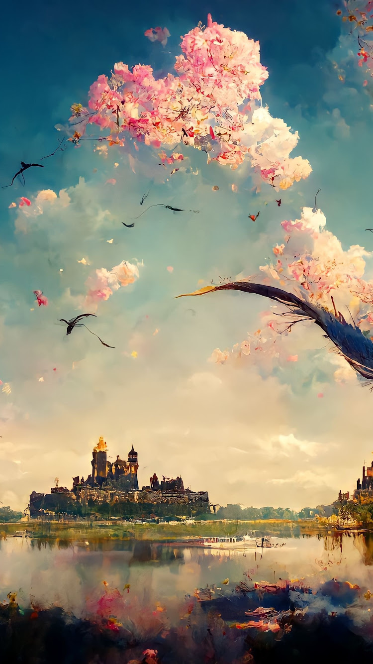 Landscape, Blossoms, Castle, Lake, Nature 4K Phone Wallpaper