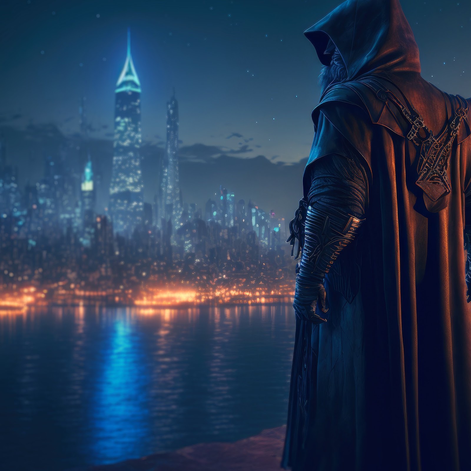 Landscape, Wizard, Night, City, Ai Art 4K Desktop Wallpaper