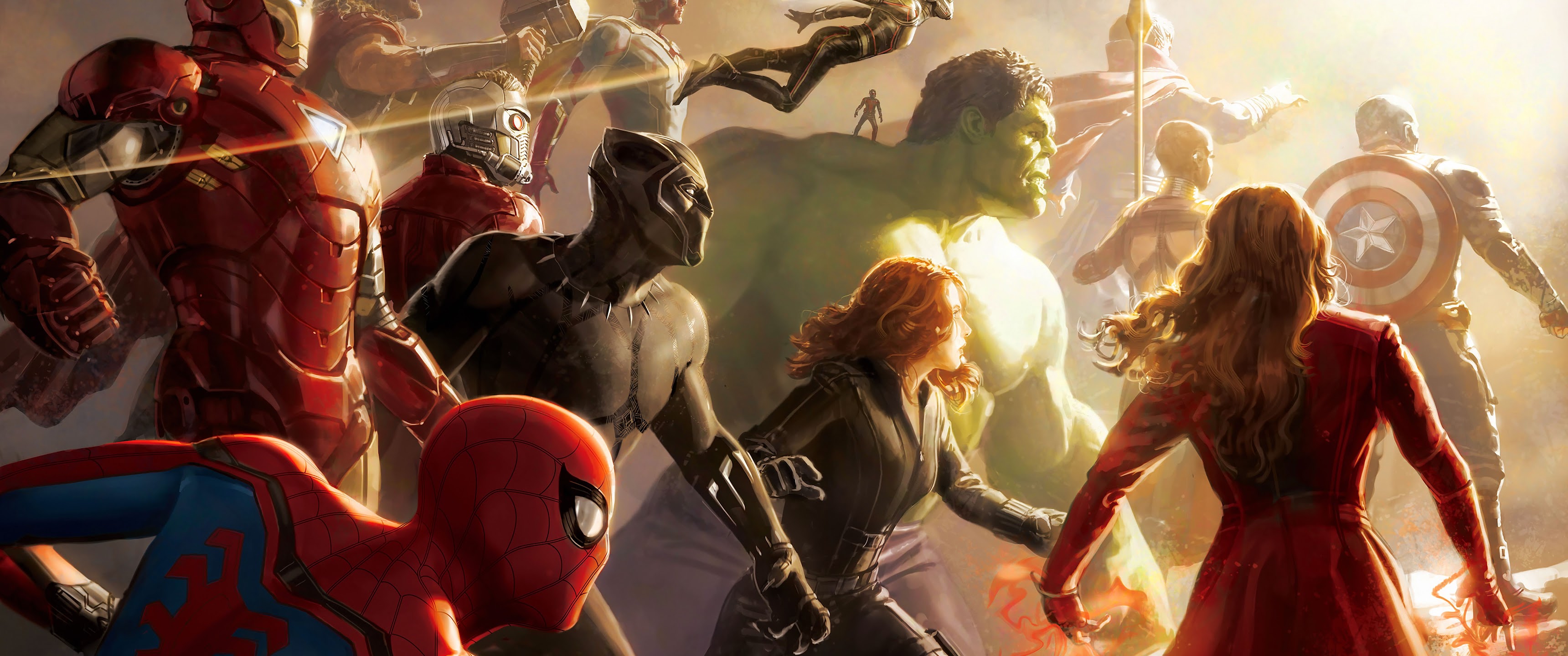 Marvel Cinematic Universe, Marvel Comics, Iron Man, Spider-Man, Thor 8K Wallpaper Background with a maximum resolution of 8000x4456 px.