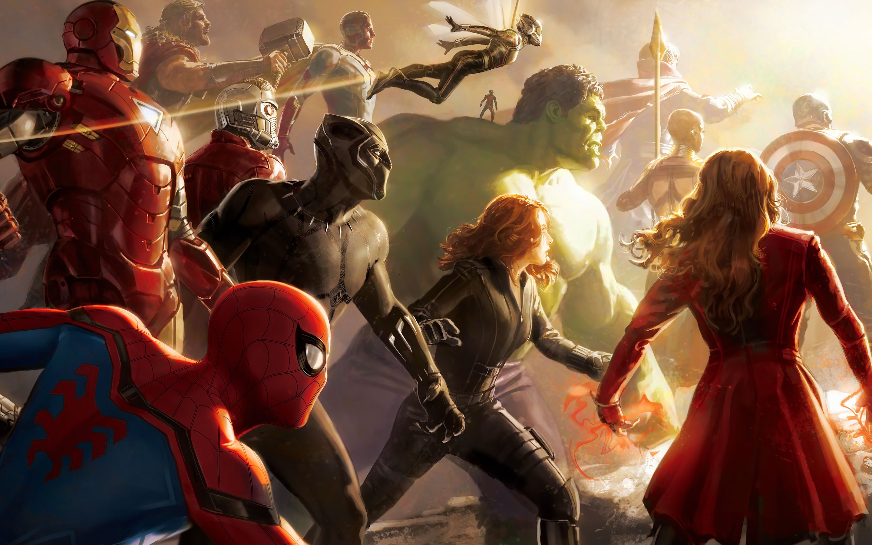 Marvel Cinematic Universe, Marvel Comics, Iron Man, Spider-Man, Thor 8K Wallpaper Background with a maximum resolution of 8000x4456 px.