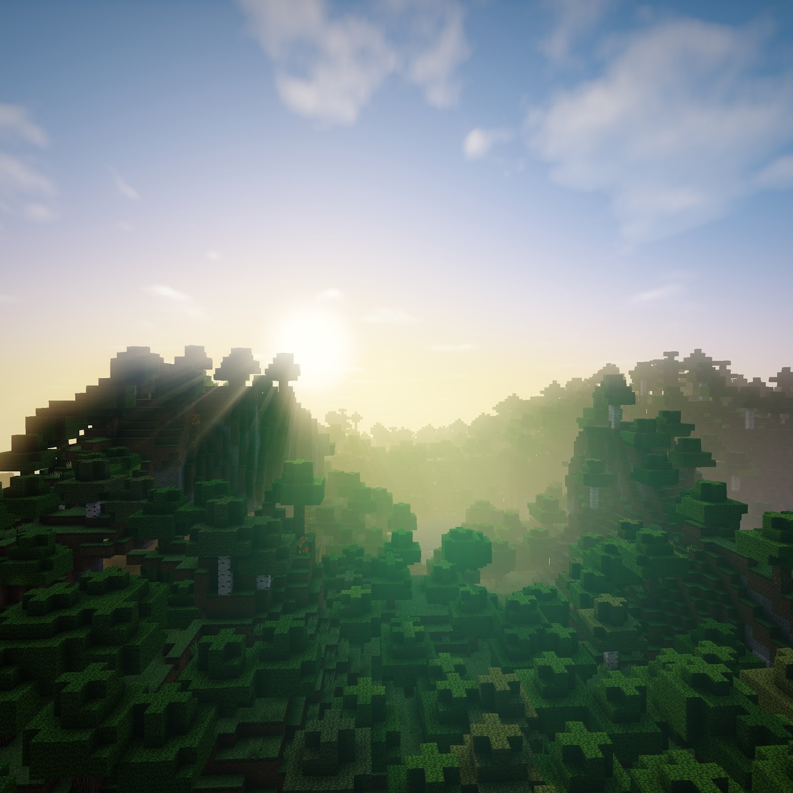 Minecraft, Clouds, Forest, Mountain Top, Sunlight 4K Desktop Wallpaper