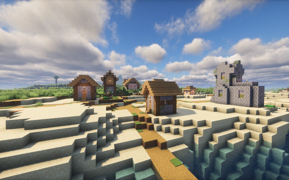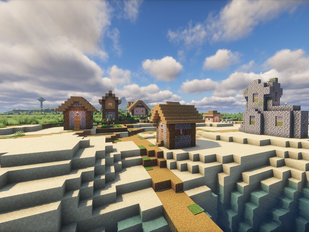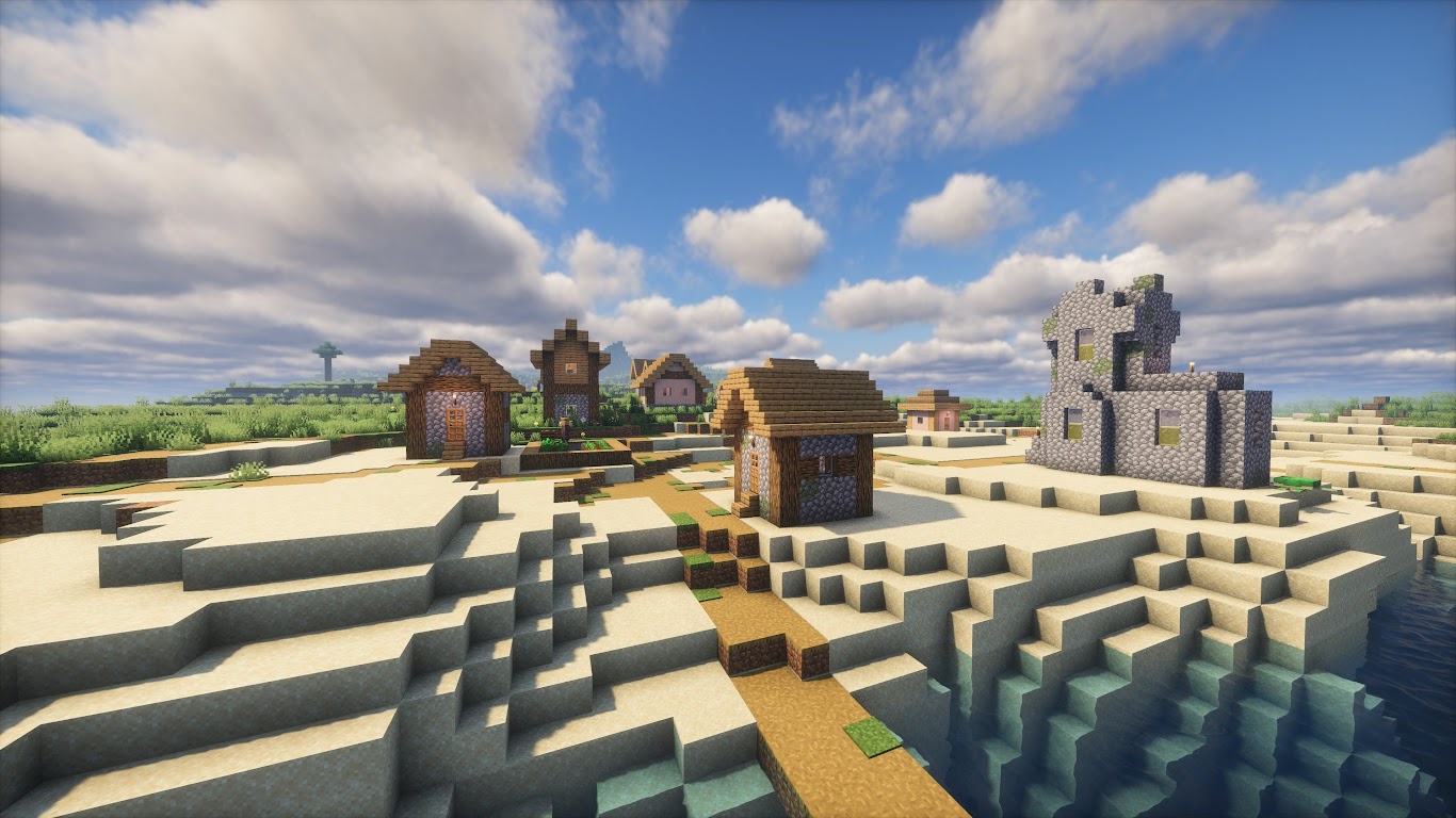 Minecraft, Village, Sea Village, Digital Art, Video Games 4K Desktop Wallpaper