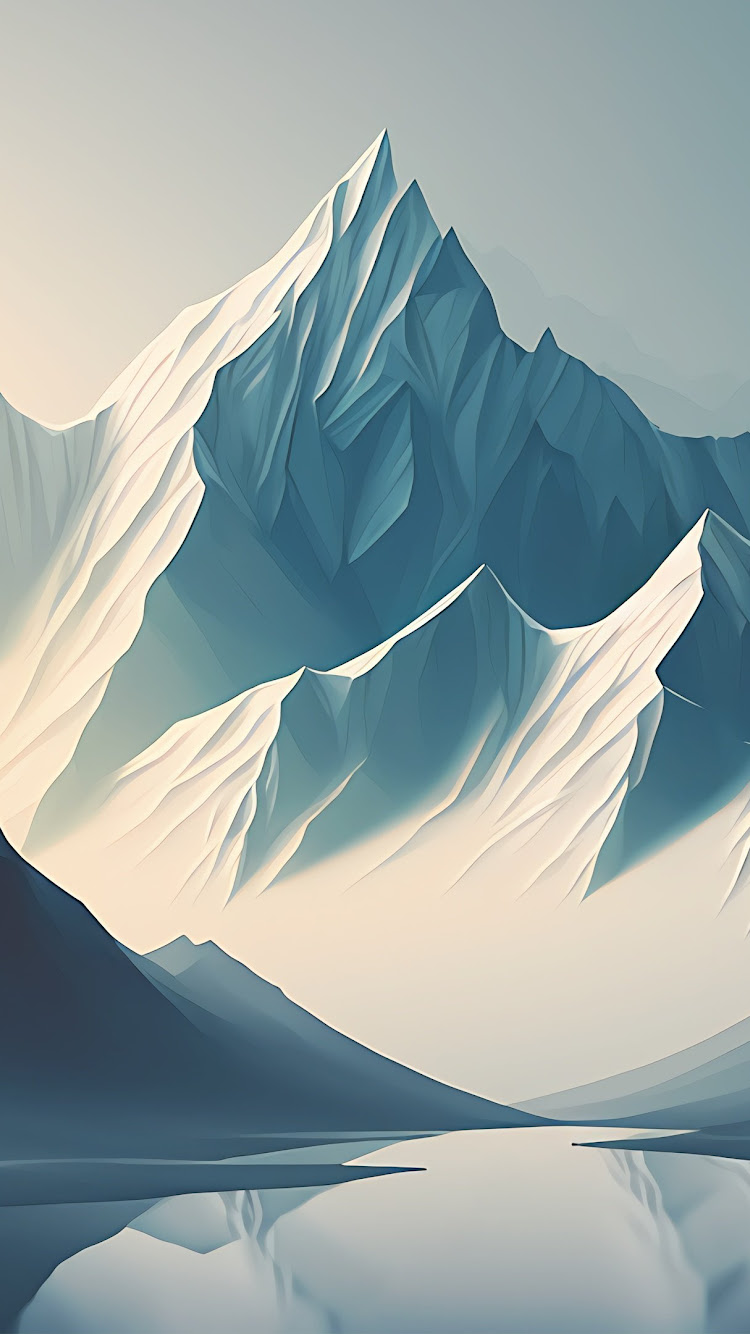 Minimalism, Ai Art, Simple Background, Landscape, Mountains 4K Phone Wallpaper
