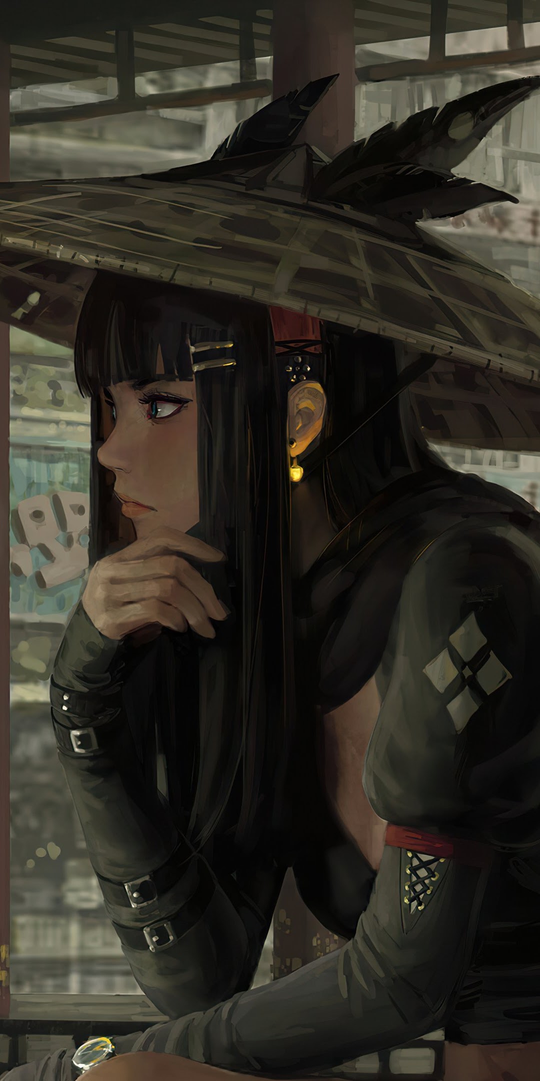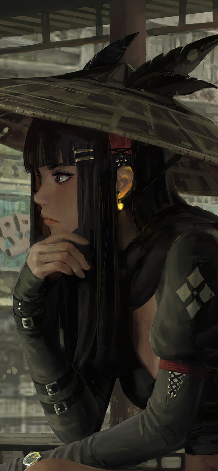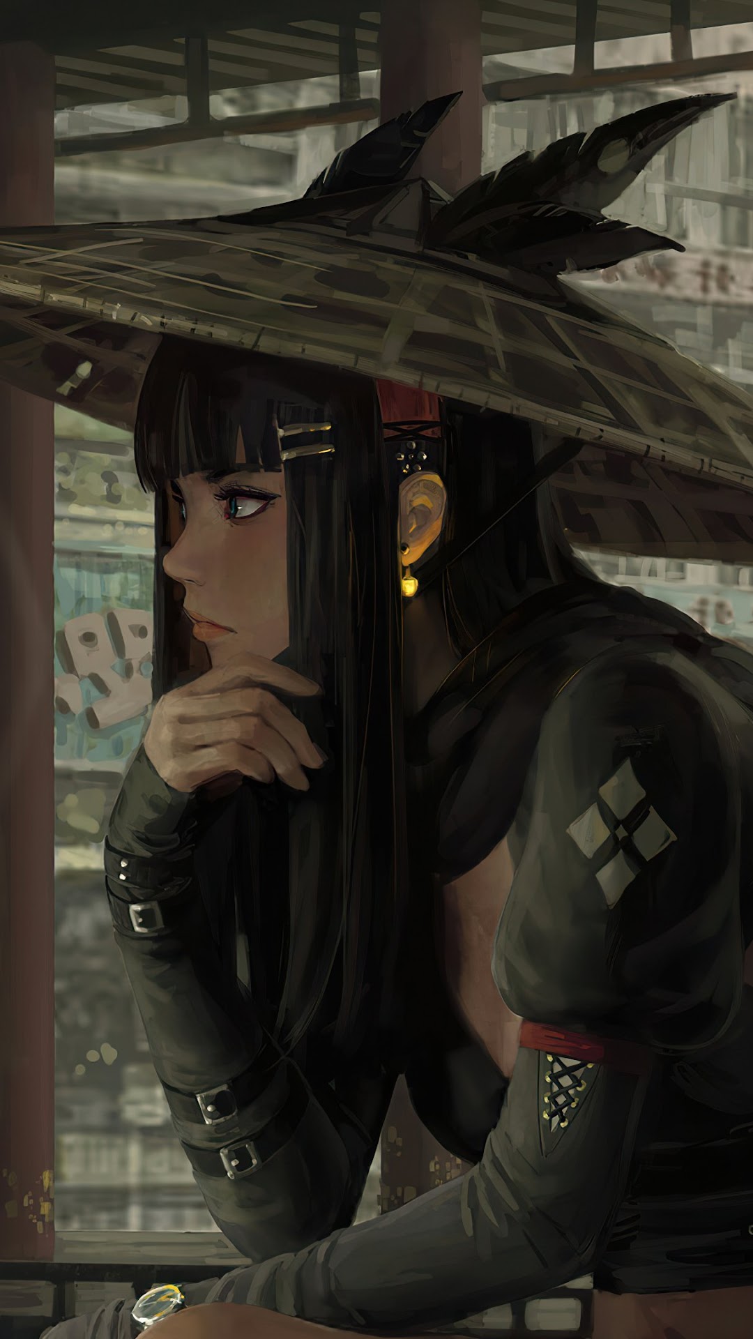 Original Characters, Black Hair, Hat, Fantasy Girl, Anime 4K Phone Wallpaper