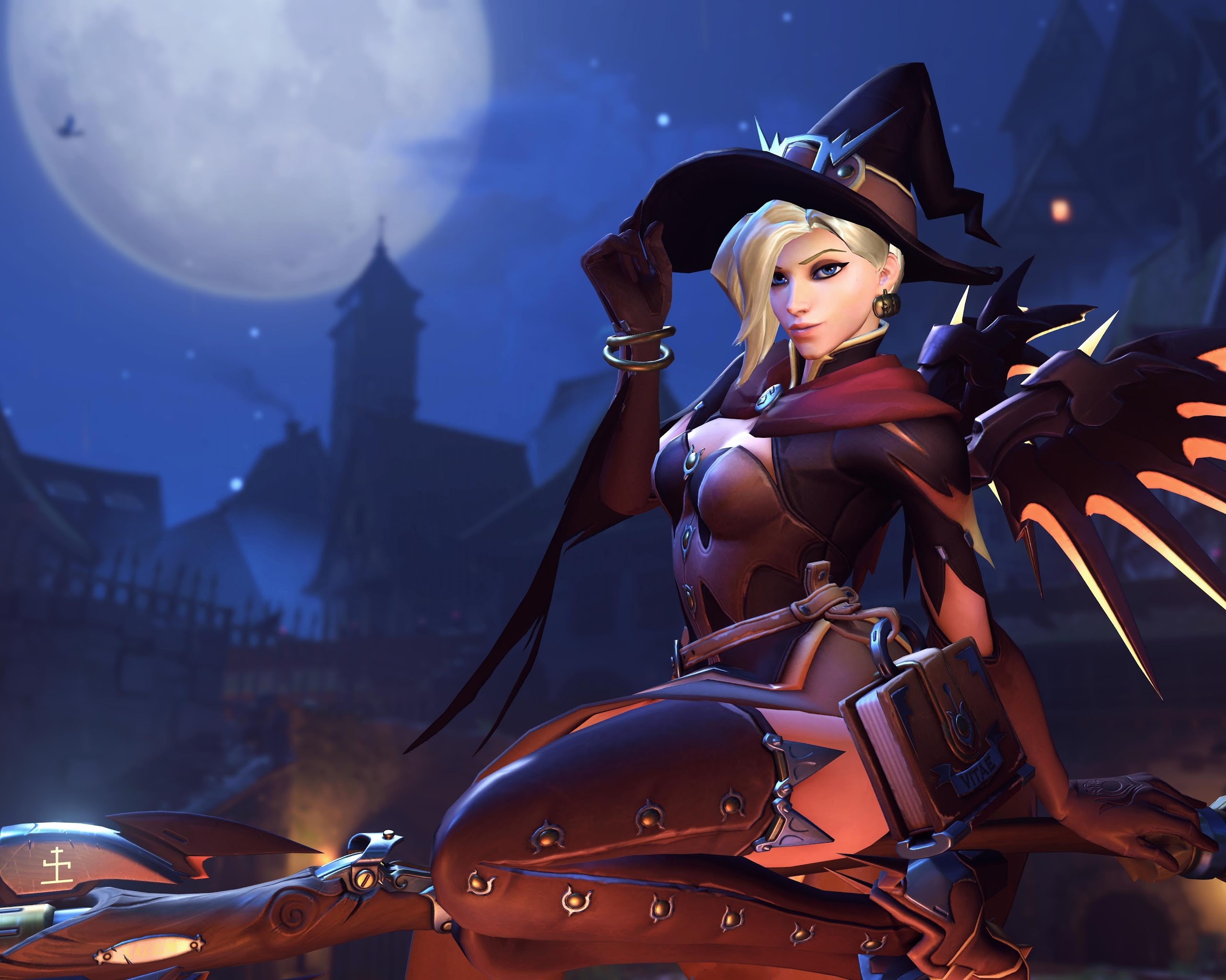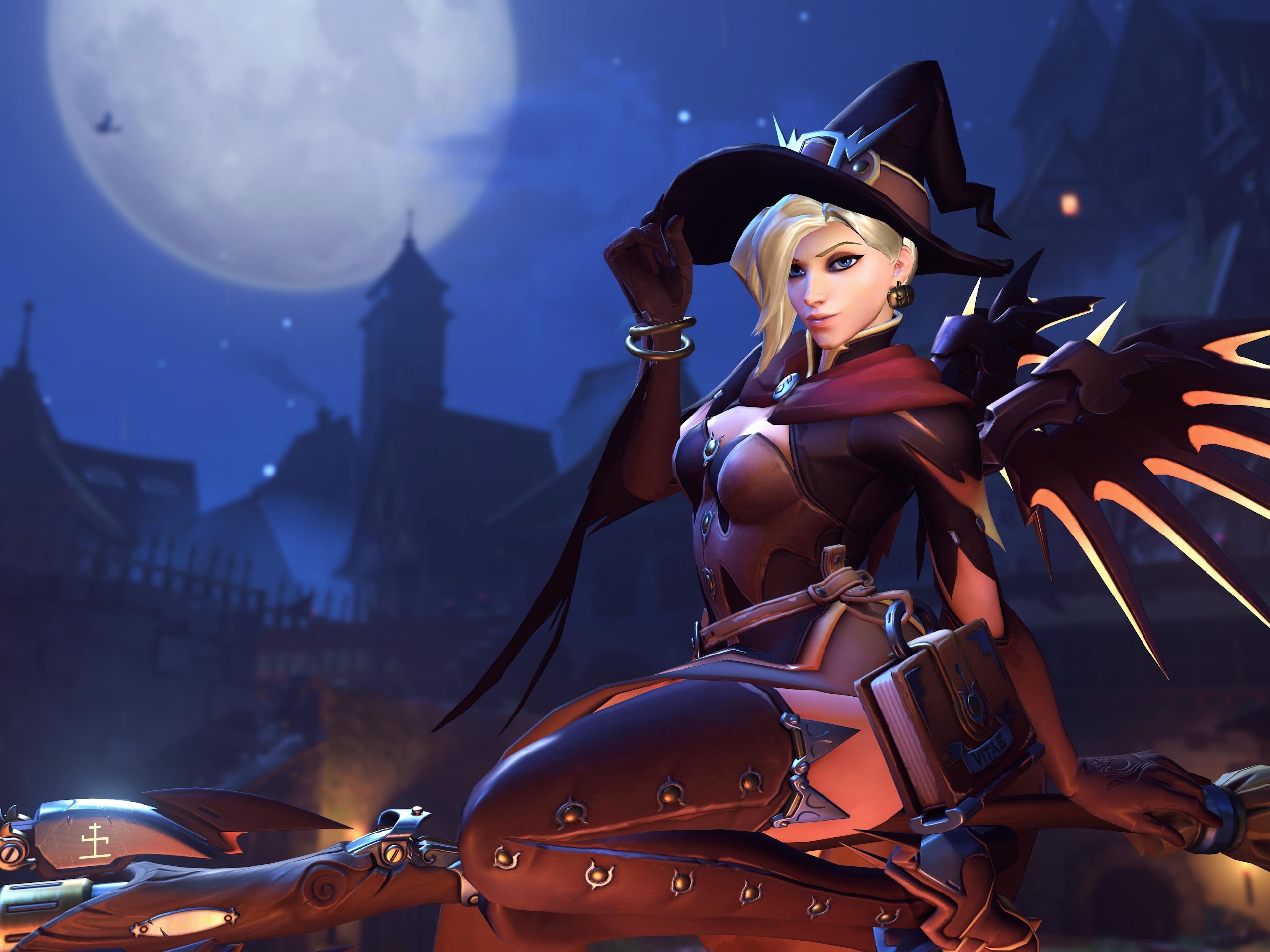 Overwatch, Mercy (Overwatch), Witch, Halloween, Blizzard Entertainment 5K Desktop Wallpaper