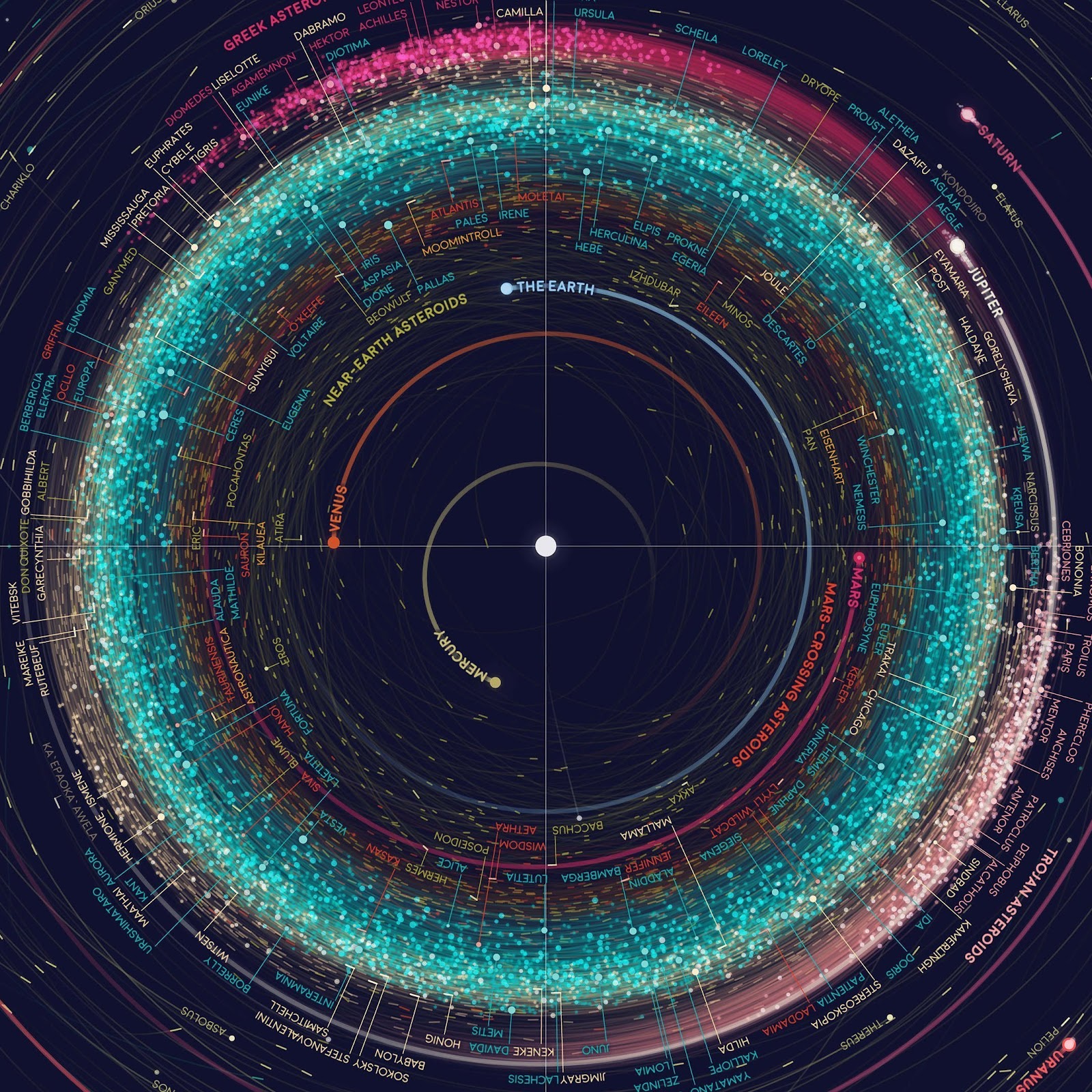 Planet, Solar System, Orbits, Asteroid, Digital Art 4K Wallpaper Background with a maximum resolution of 3840x2160 px.