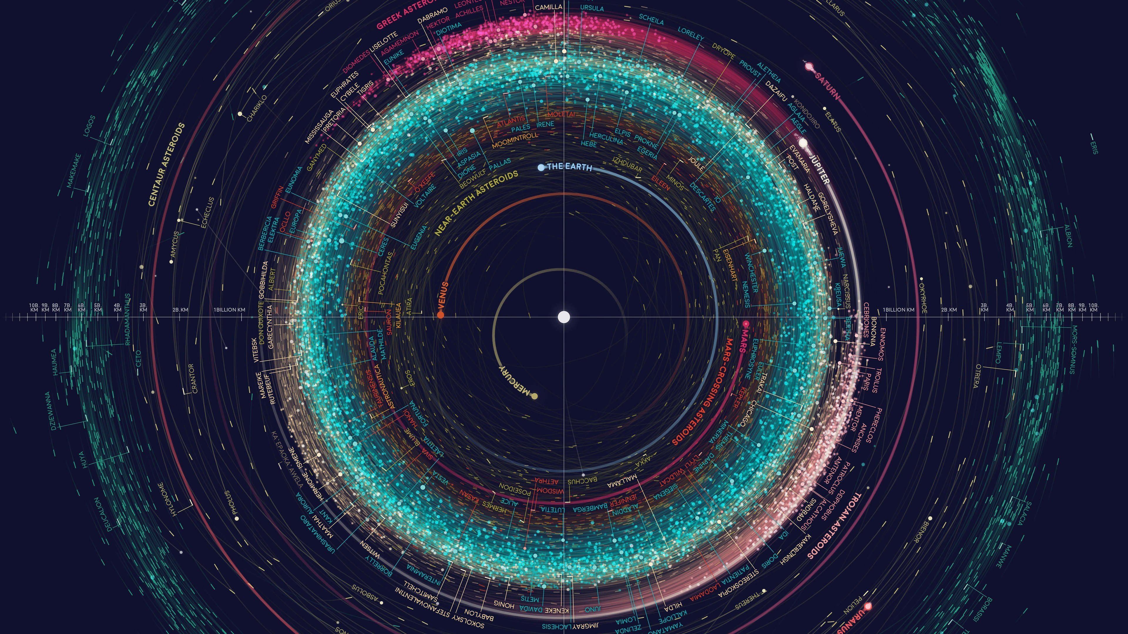 Planet, Solar System, Orbits, Asteroid, Digital Art 4K Wallpaper Background with a maximum resolution of 3840x2160 px.