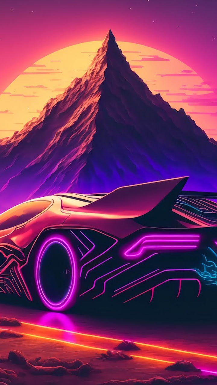 Retrowave, Old Car, Palm Trees, Mountain Top, Sunset 5K Desktop, iPhone Wallpaper Background