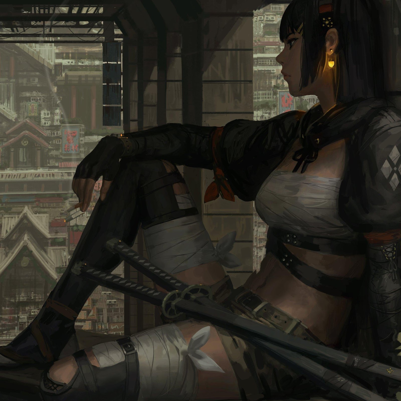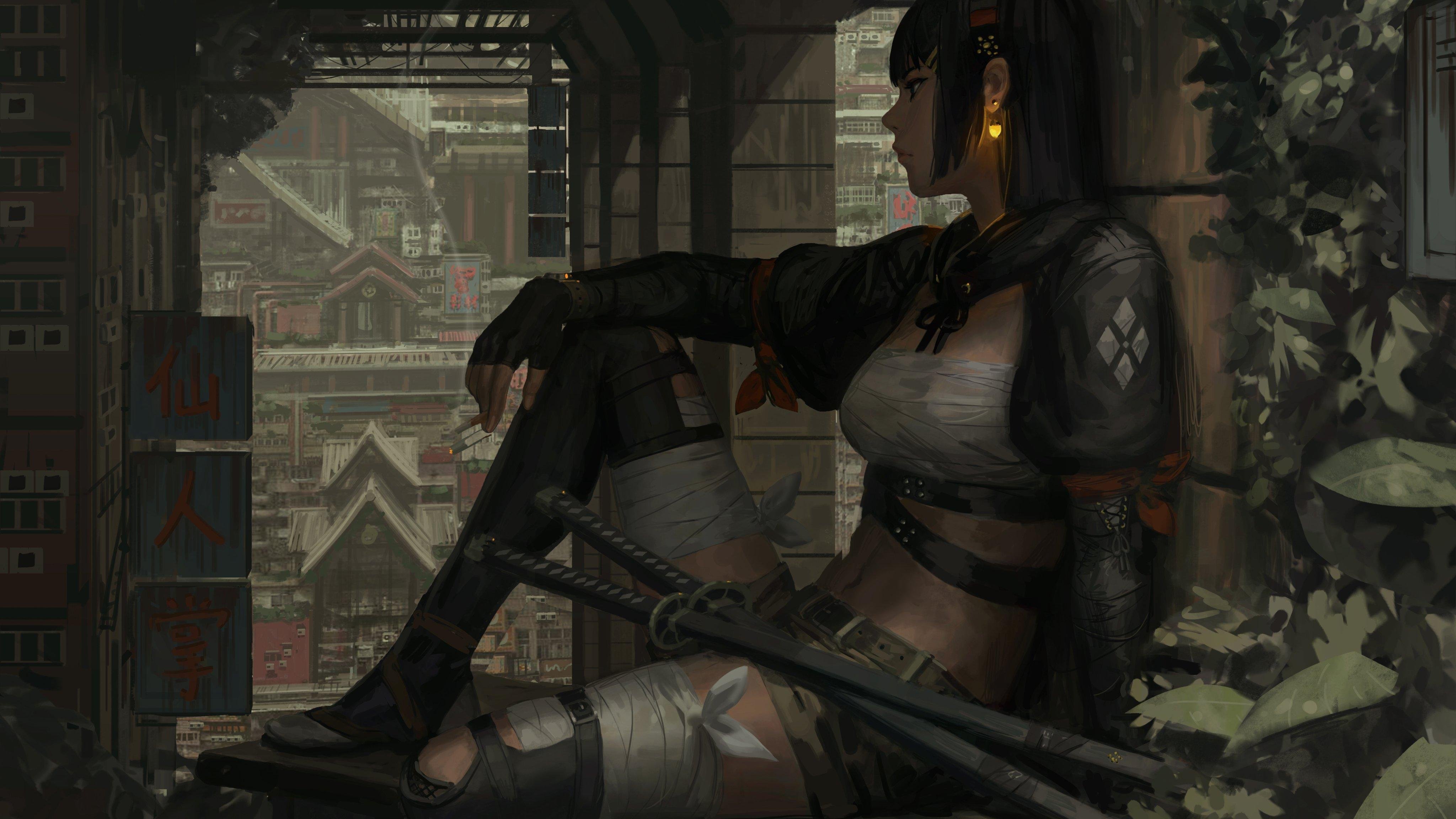 Sarashi, Leaves, Women With Swords, Bandage, Female Warrior 4K Desktop Wallpaper