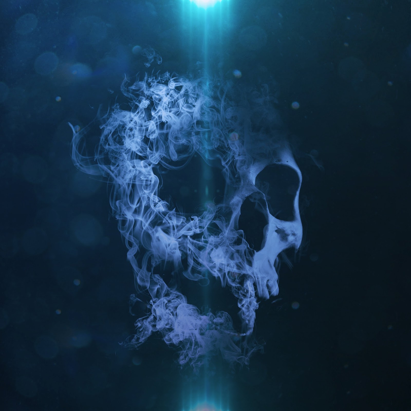 Smoke, Skull, Bokeh, Blue Background, Digital Art 5K Phone Wallpaper