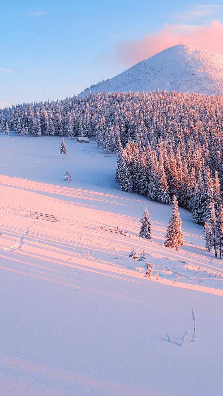 Snow, Winter, Cold, Landscape, Forest 4K Wallpaper Background with a maximum resolution of 3840x2160 px.