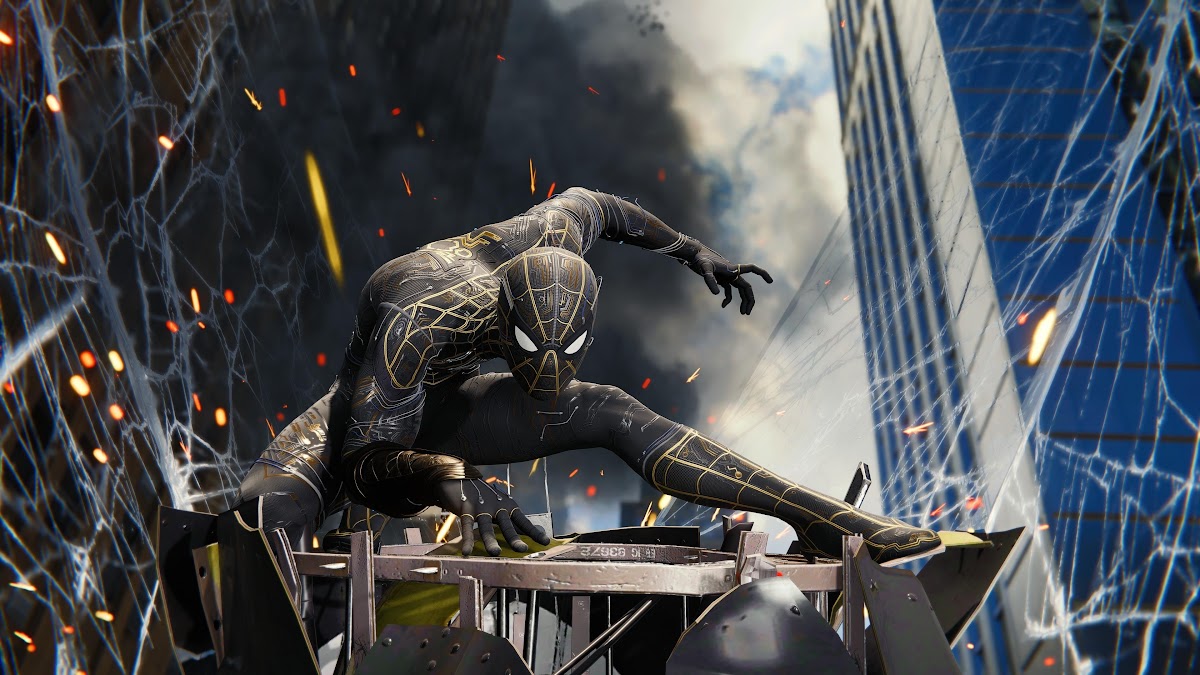 Spider-Man, Spider-Man (2018), Black Suited Spiderman, Marvel Super Heroes, Video Games 4K Wallpaper Background with a maximum resolution of 3840x2160 px.