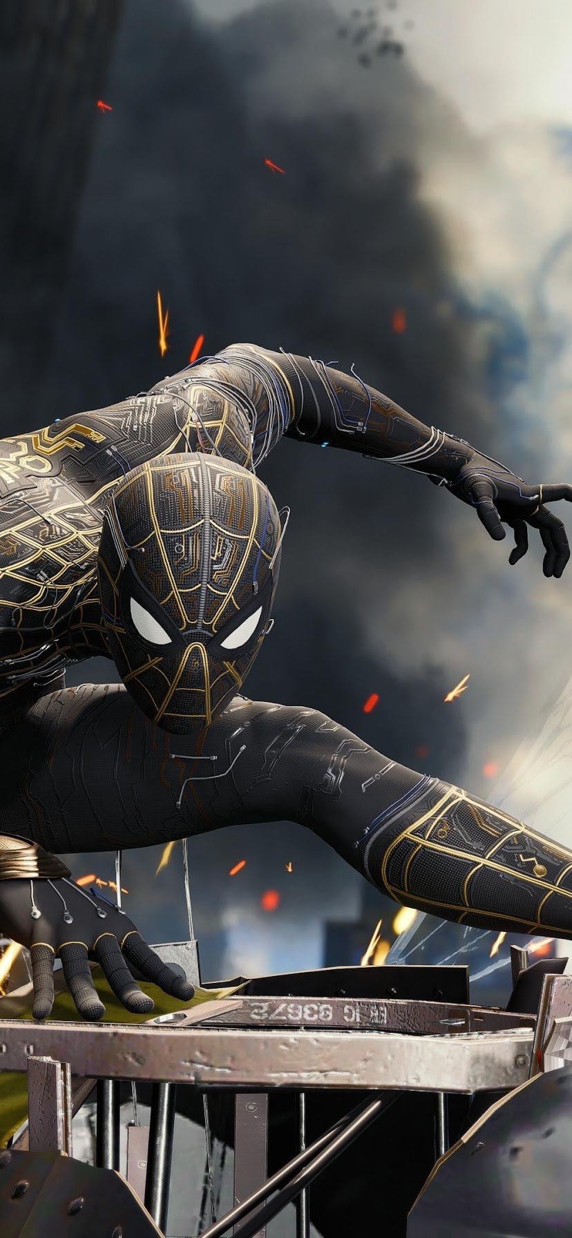 Spider-Man, Spider-Man (2018), Black Suited Spiderman, Marvel Super Heroes, Video Games 4K Desktop, iPhone Wallpaper Background
