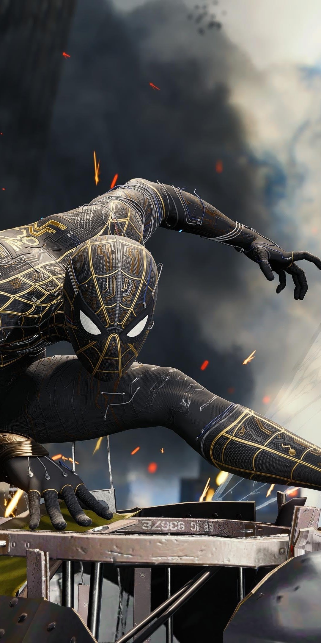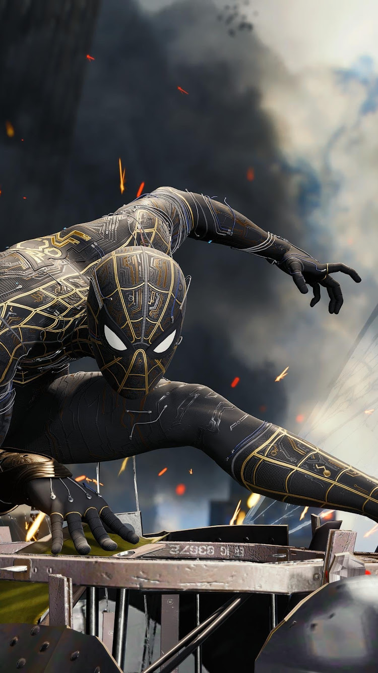 Spider-Man, Spider-Man (2018), Black Suited Spiderman, Marvel Super Heroes, Video Games 4K Wallpaper Background with a maximum resolution of 3840x2160 px.