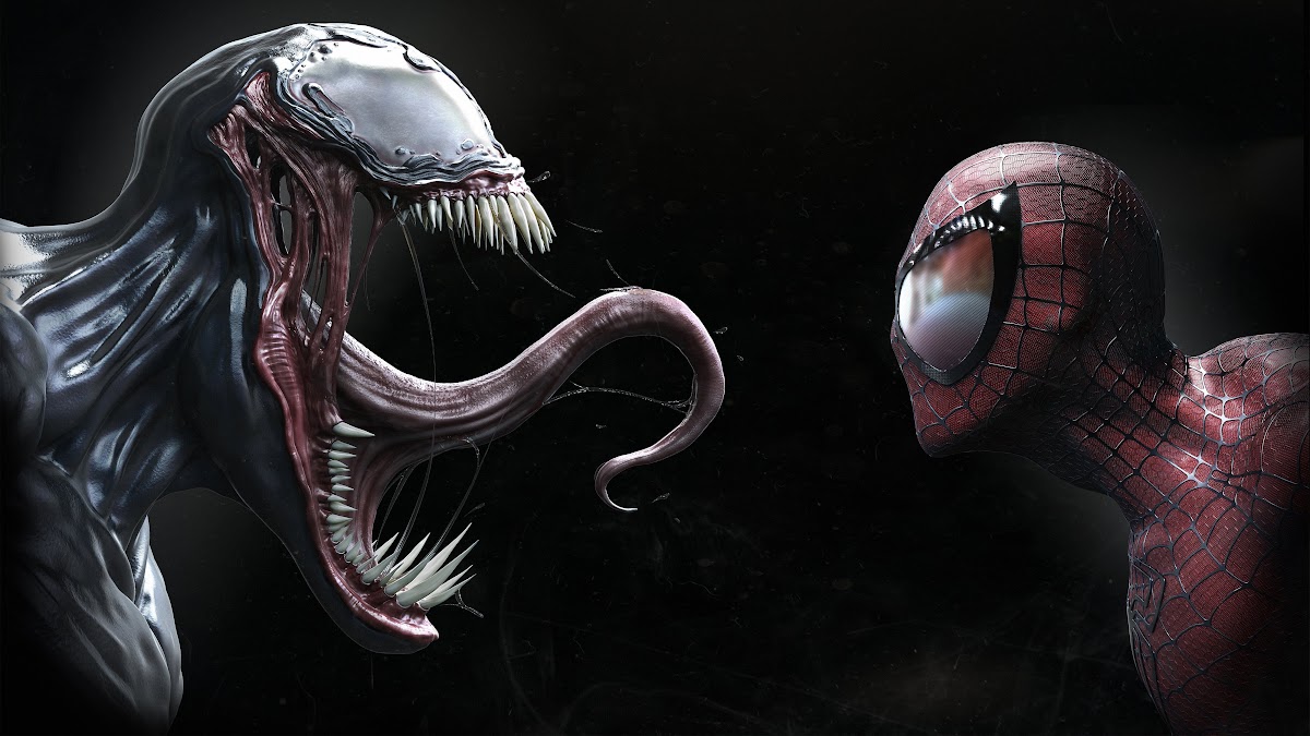 Symbiote, Spider-Man, Venom, Simple Background, Tongue Out 4K Wallpaper Background with a maximum resolution of 4000x2250 px.