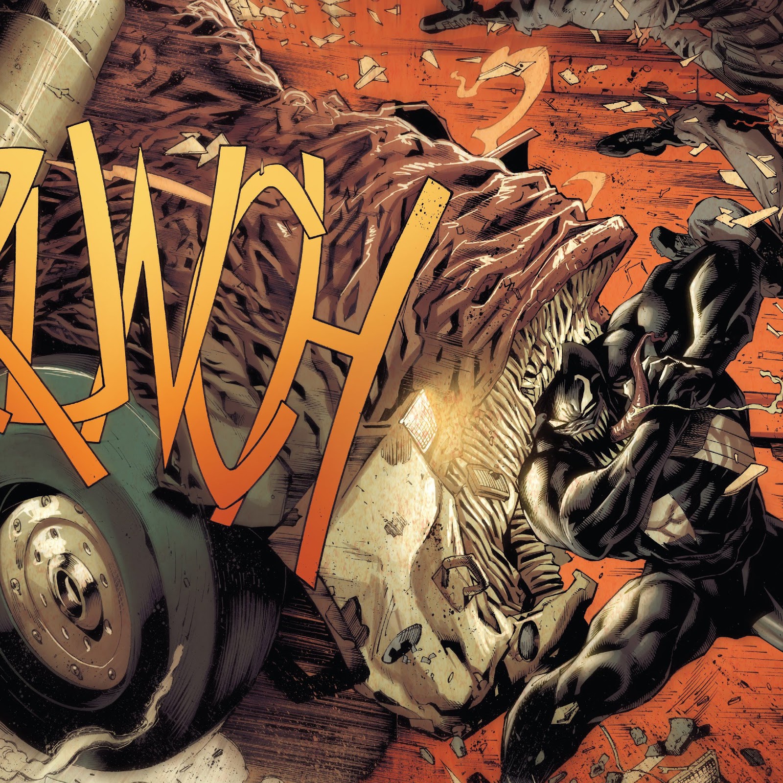 Venom, Comic Art, Truck, Men, Destruction 4K Wallpaper Background with a maximum resolution of 3975x3056 px.