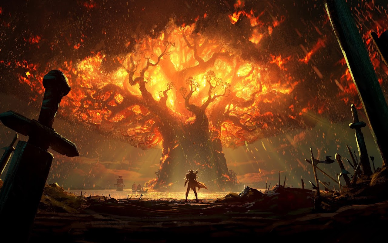 Video Games, Warcraft, Alliance, Teldrassil, Fire 8K Desktop Wallpaper