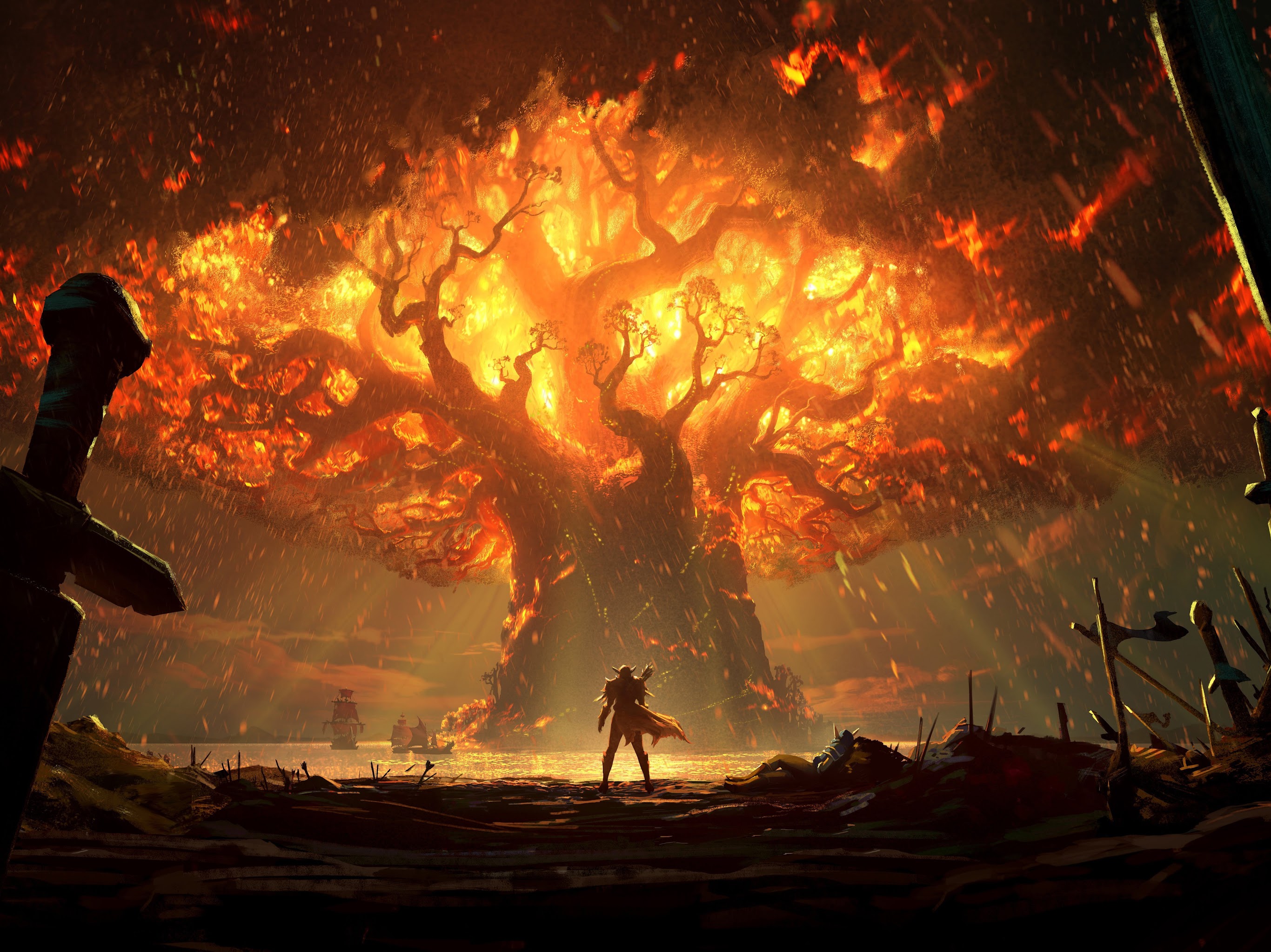 Video Games, Warcraft, Alliance, Teldrassil, Fire 8K Desktop, iPhone Wallpaper Background