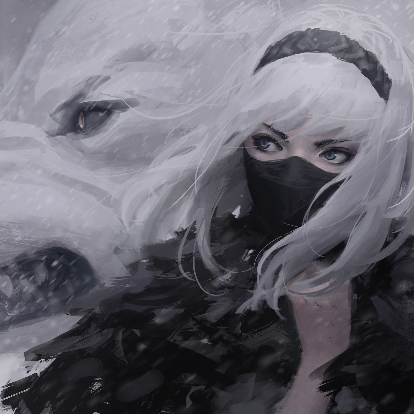 Women, Fantasy Girl, Wolf, White, White Hair 4K Phone Wallpaper