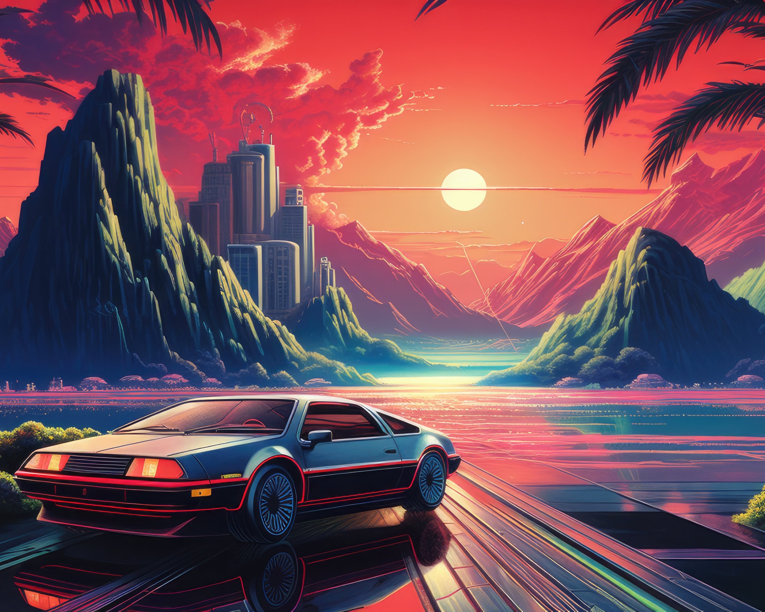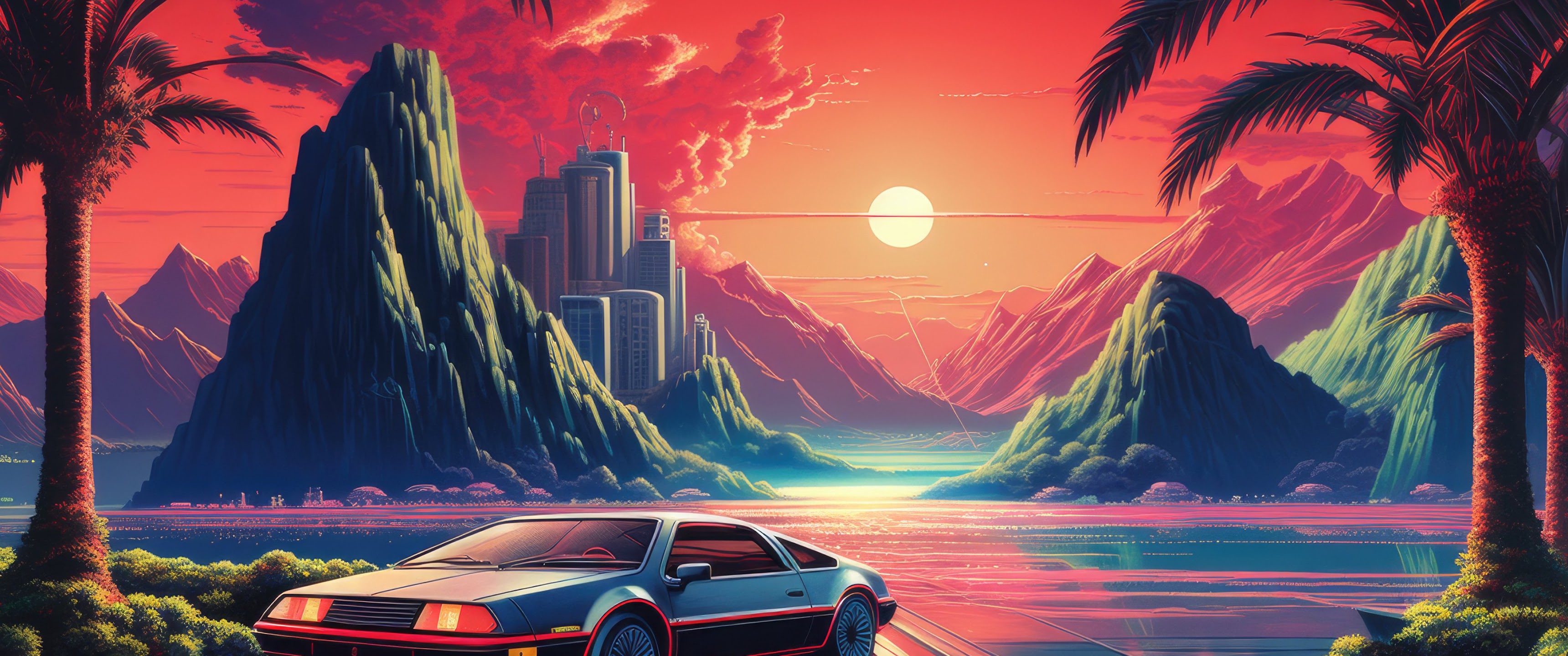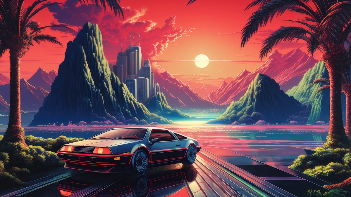 Synthwave, DeLorean, Outrun, Retrowave 4K Desktop Wallpaper