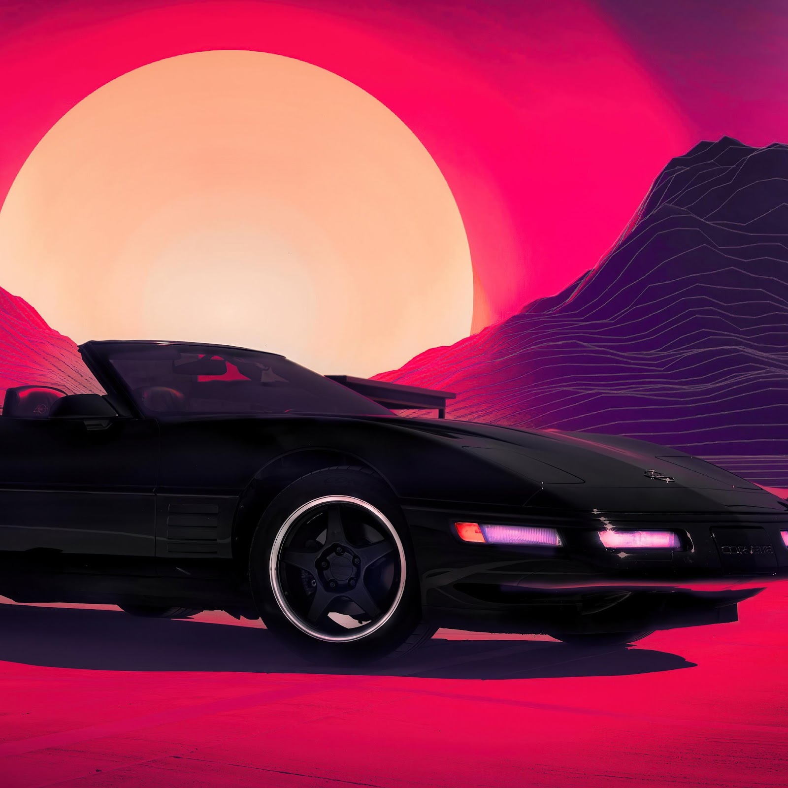 Corvette, Outrun, Synthwave, Retrowave 4K Desktop and Mobile Wallpaper Background with a maximum resolution of 3840x2160 px.