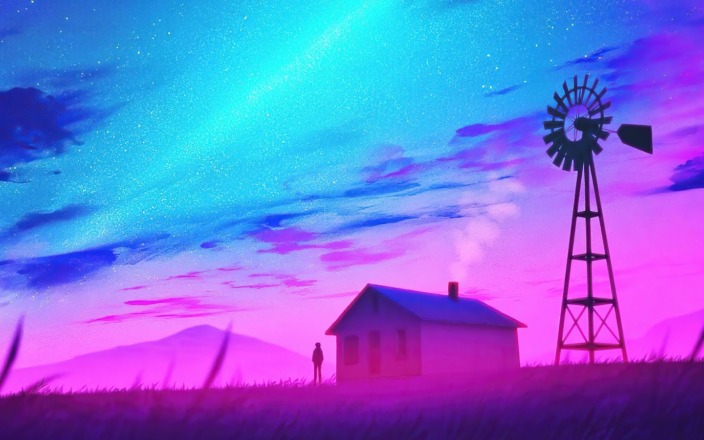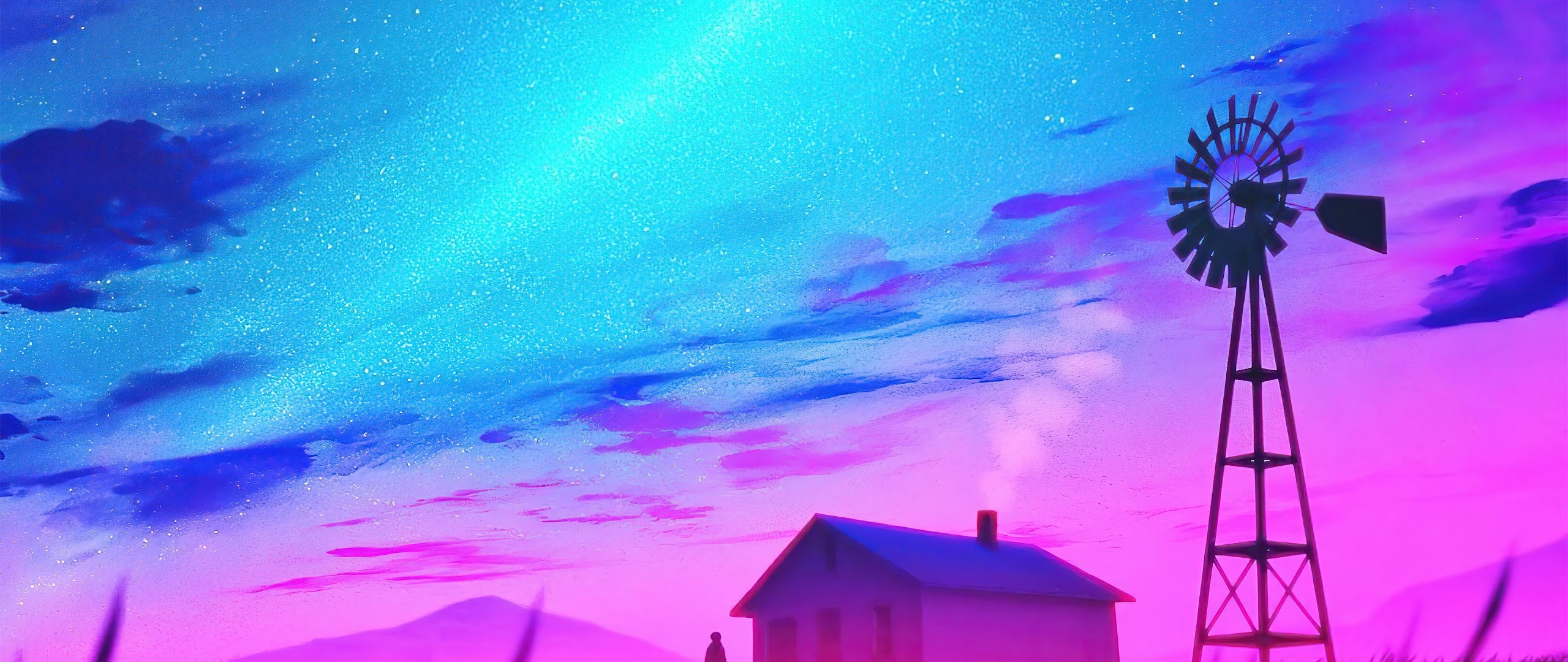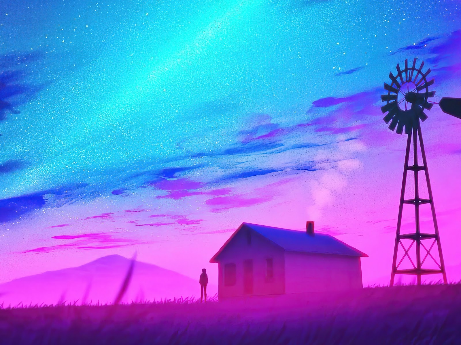Nightscape, Windmill, Synthwave, Stars 4K Desktop Wallpaper