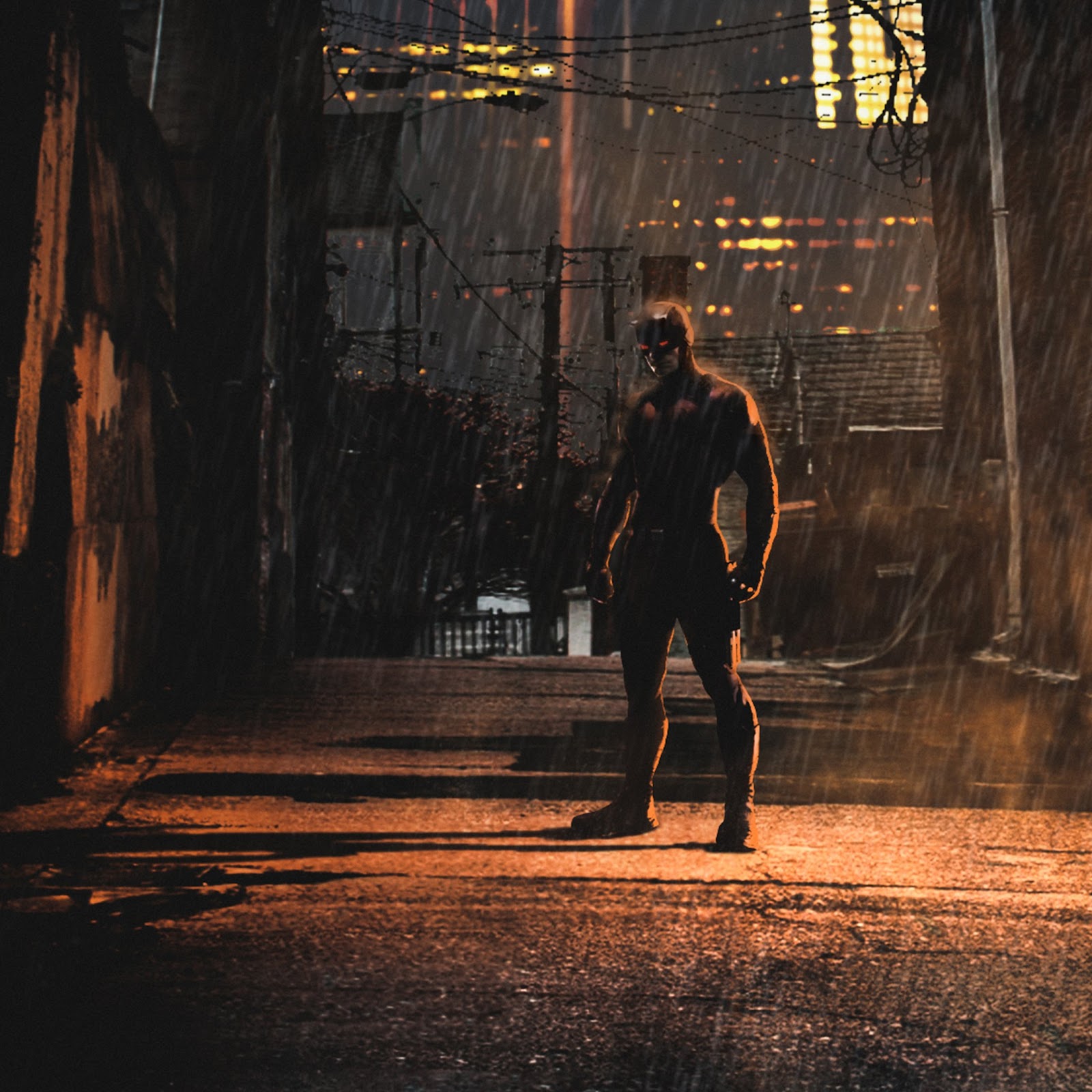 Daredevil, Alley, Rain, Noir, Cityscape 4K Wallpaper Background with a maximum resolution of 3840x2160 px.