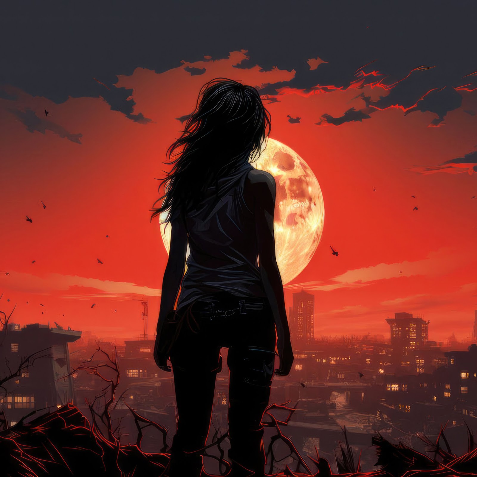 Apocalypse, Woman, Cityscape, Moon 4K Desktop Wallpaper Background with a maximum resolution of 3840x2160 px.