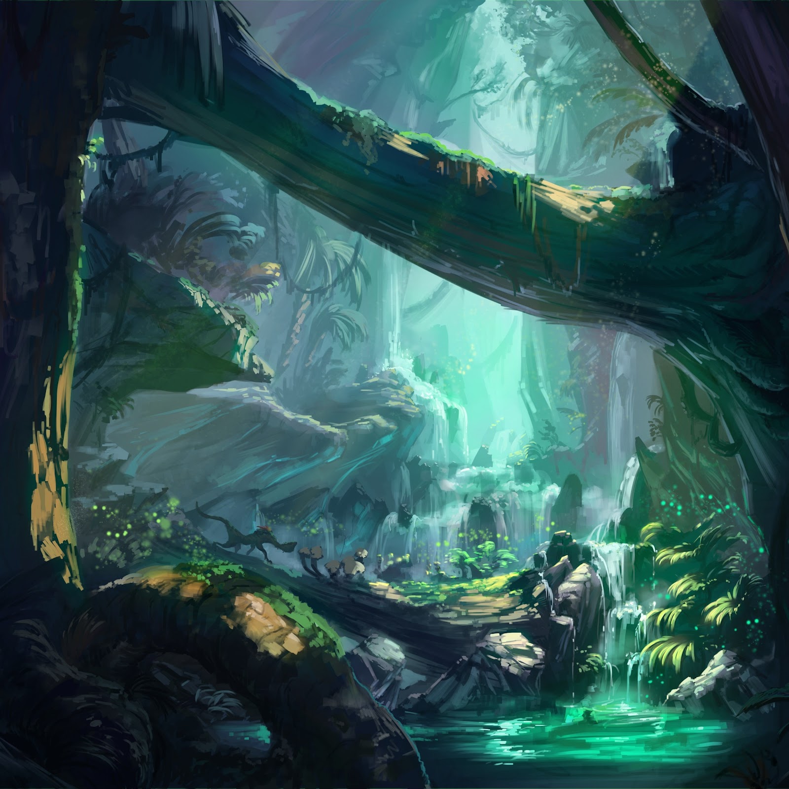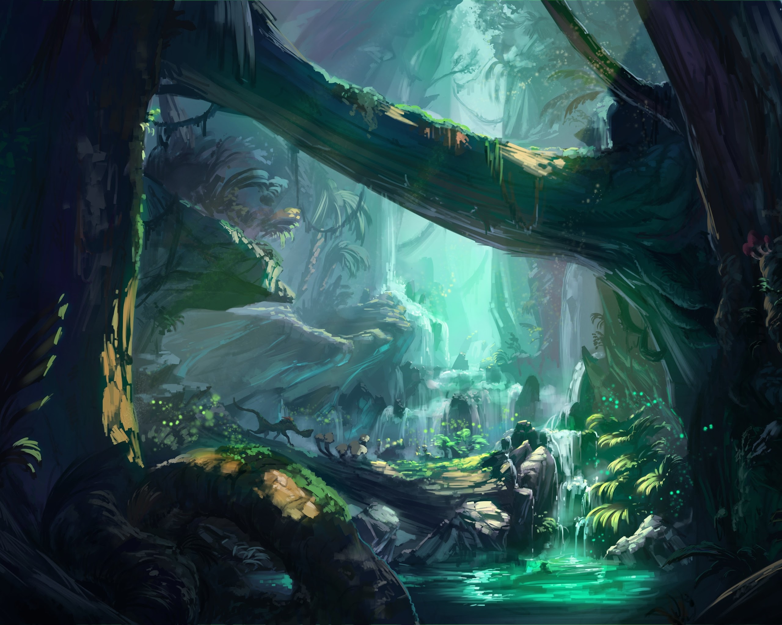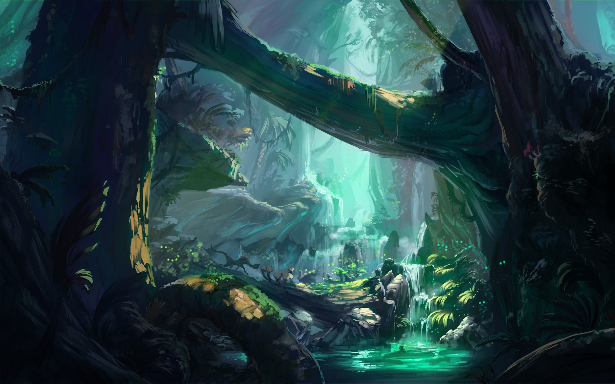 Ancient, Fantasy Art, Trees, Waterfall, River 4K Desktop Wallpaper Background with a maximum resolution of 5000x2750 px.