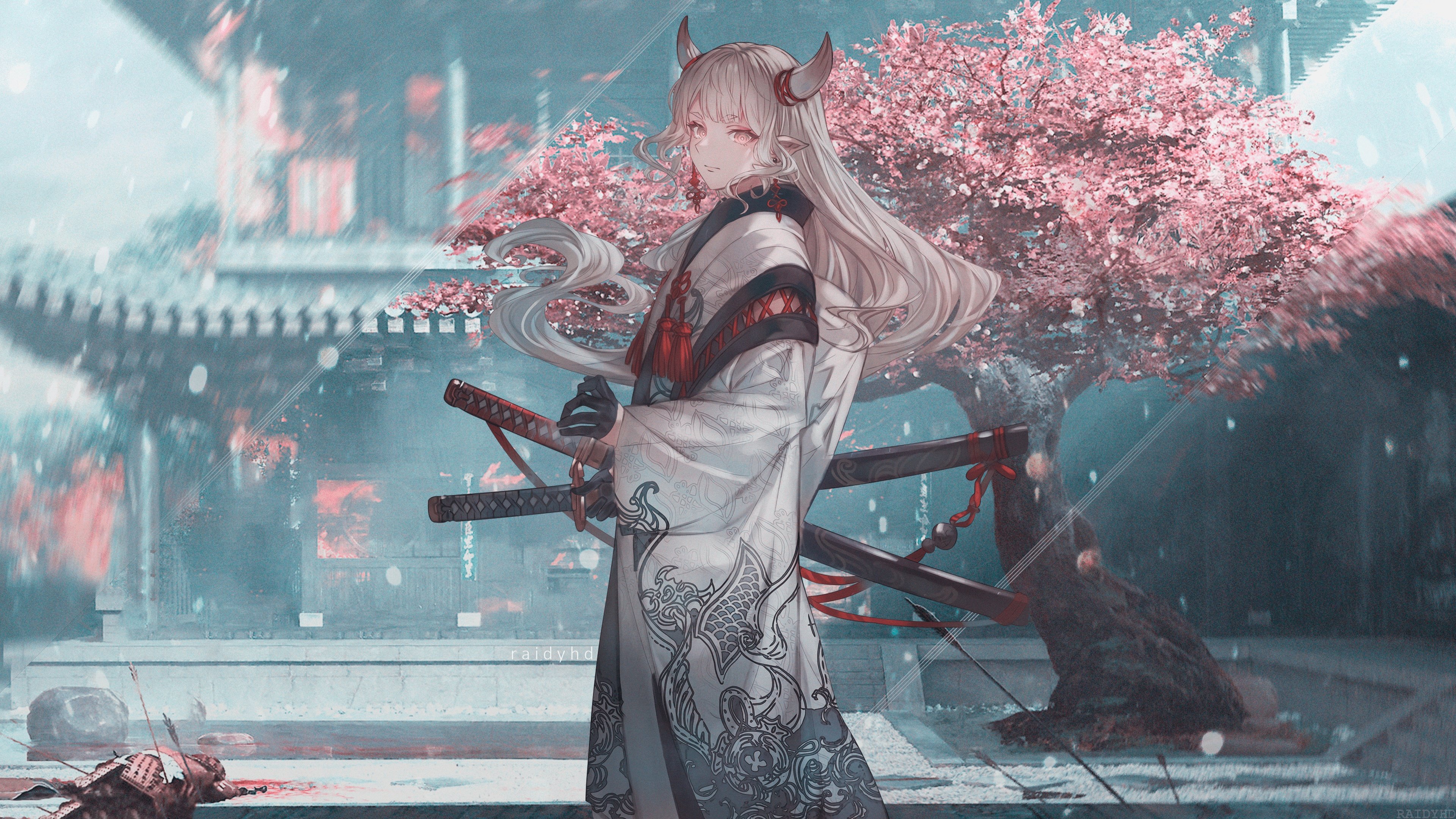 Anime, Anime Girls, Fantasy Art, Fantasy Girl, Horns 4K Desktop Wallpaper Background with a maximum resolution of 3840x2160 px.