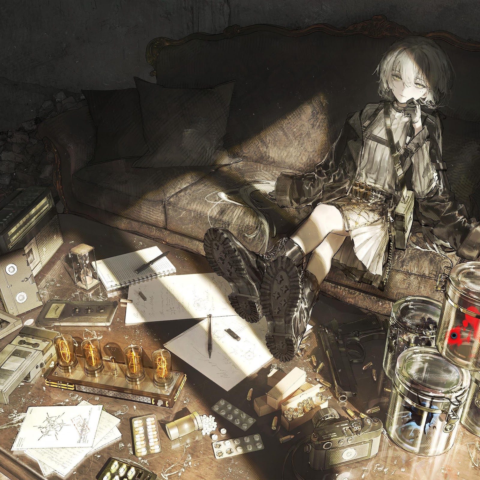 Anime, Anime Girls, Sitting, Short Hair, Legs Crossed 4K Phone Wallpaper