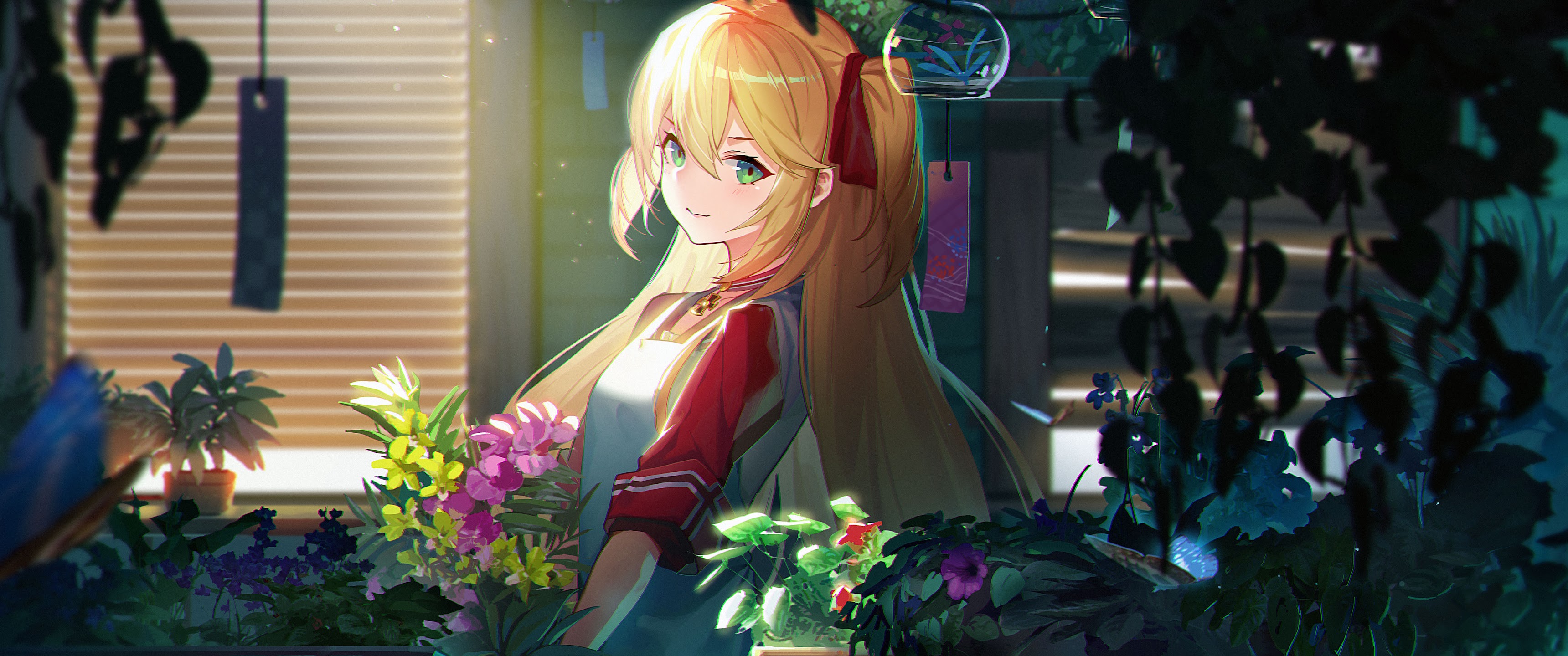 Anime Flowers Blonde Twintails Girl 4K Desktop Wallpaper