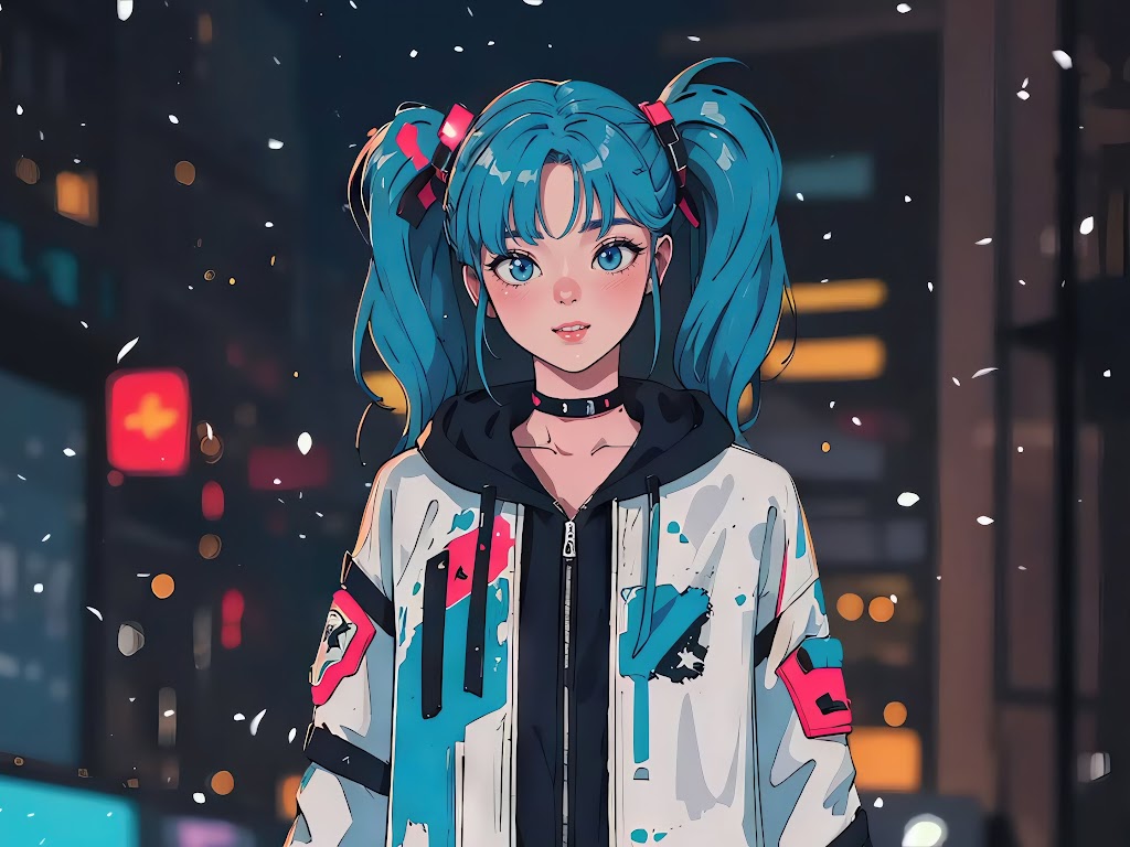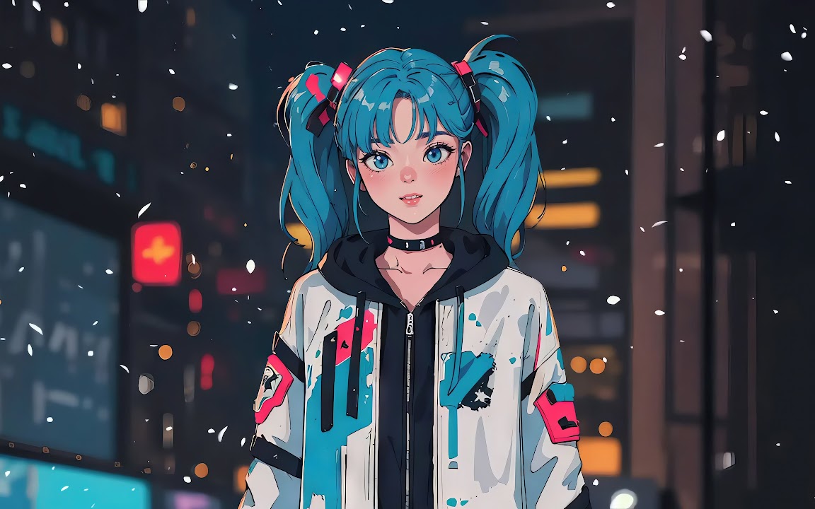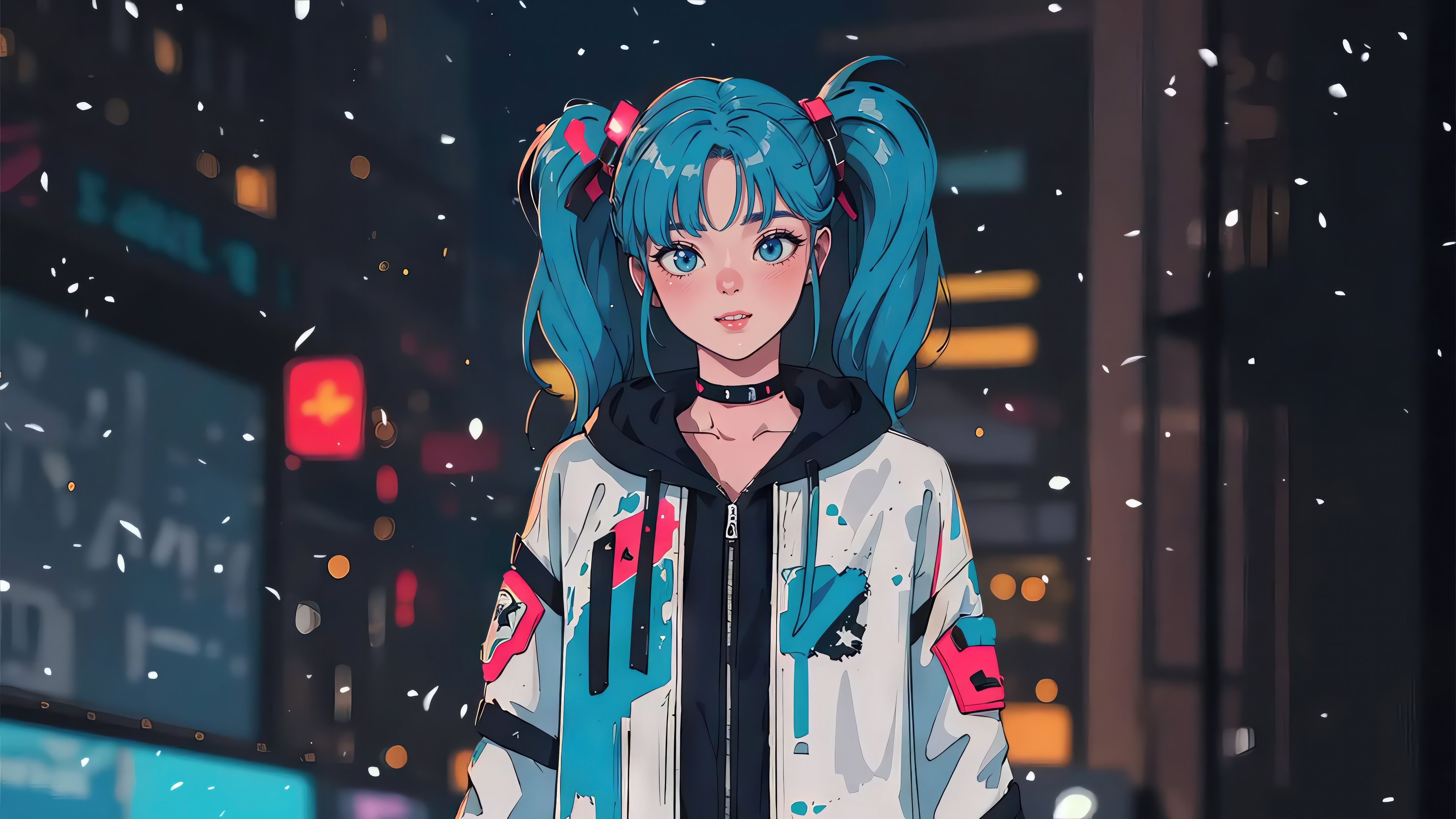 Anime Girl Embraces Snowy City 4K Desktop Wallpaper