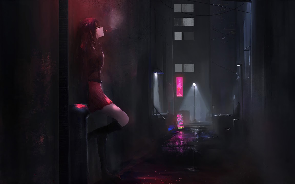 Anime, Alleyway, Smoking, Neon 4K Wallpaper Background [3840x2160]