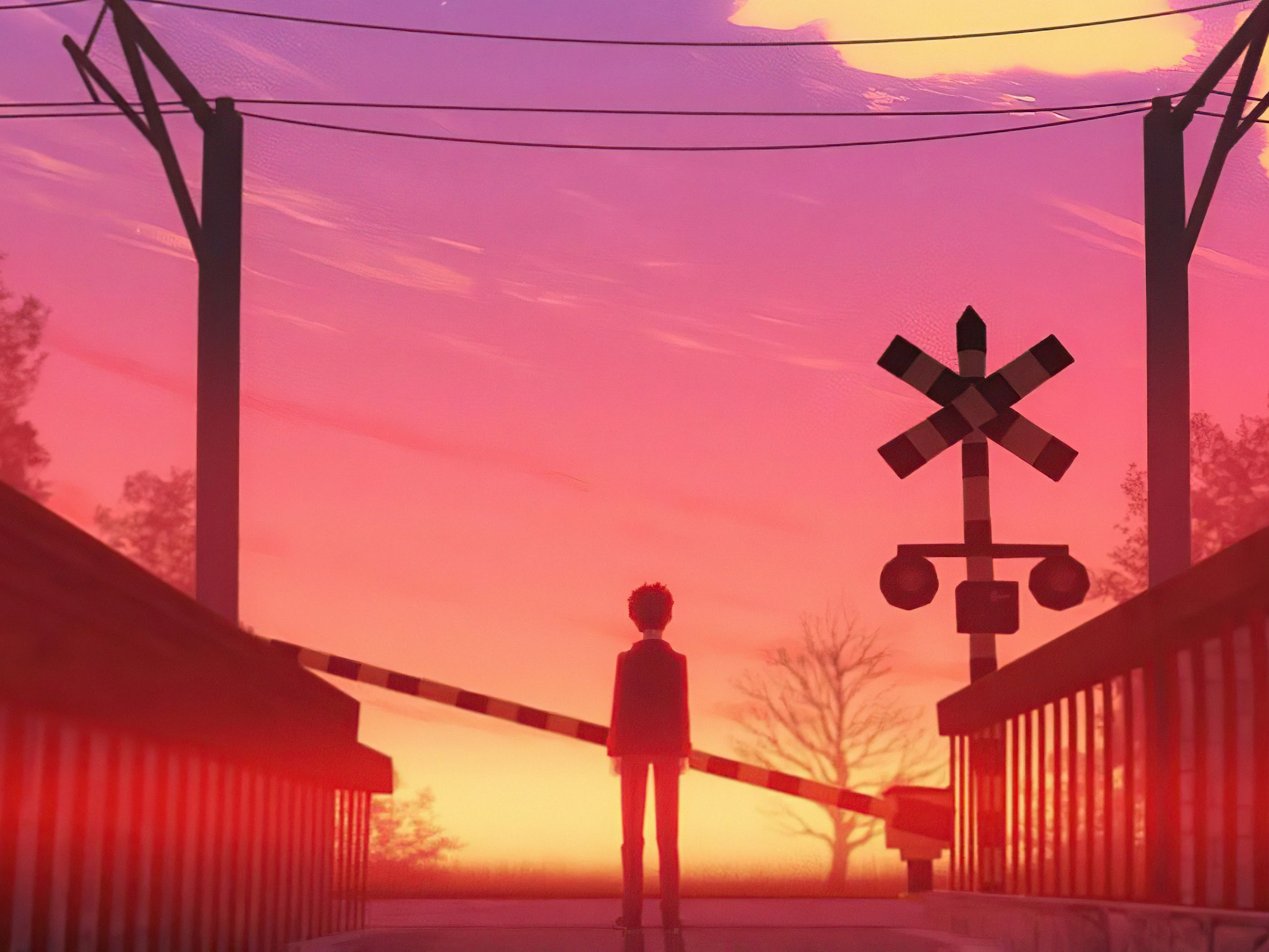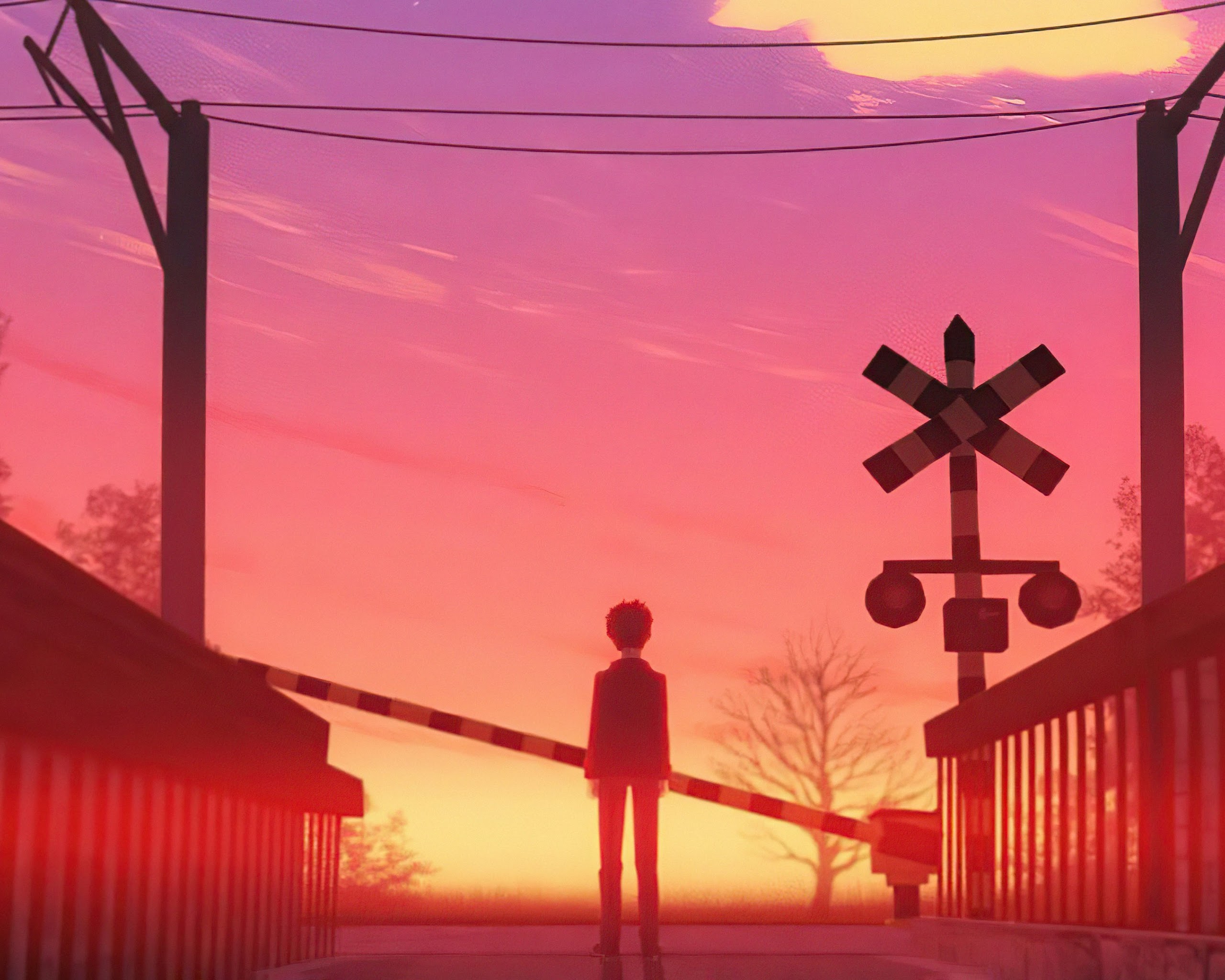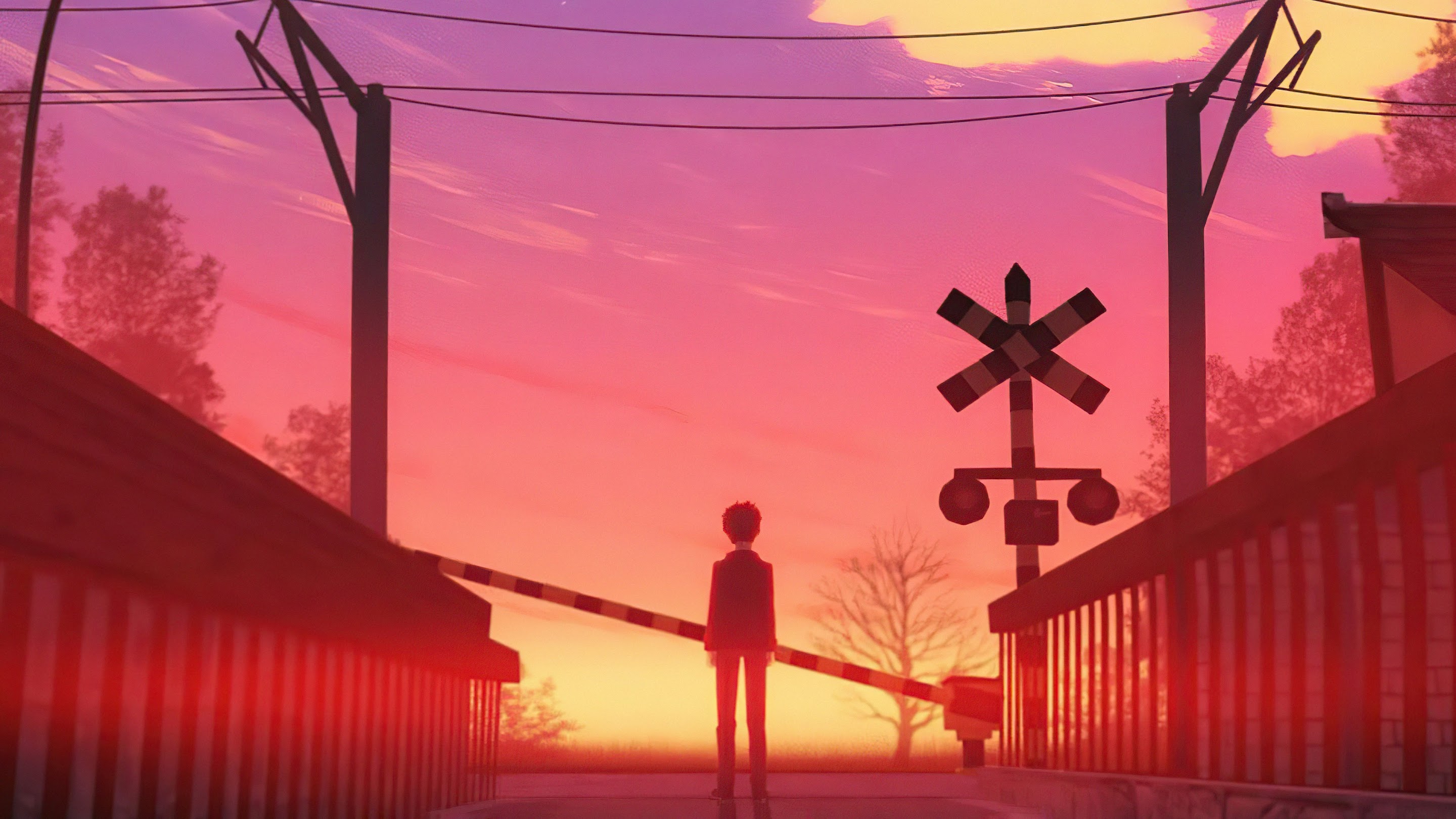 Anime, Railroad, Sunset, Crossing 4K Desktop Wallpaper