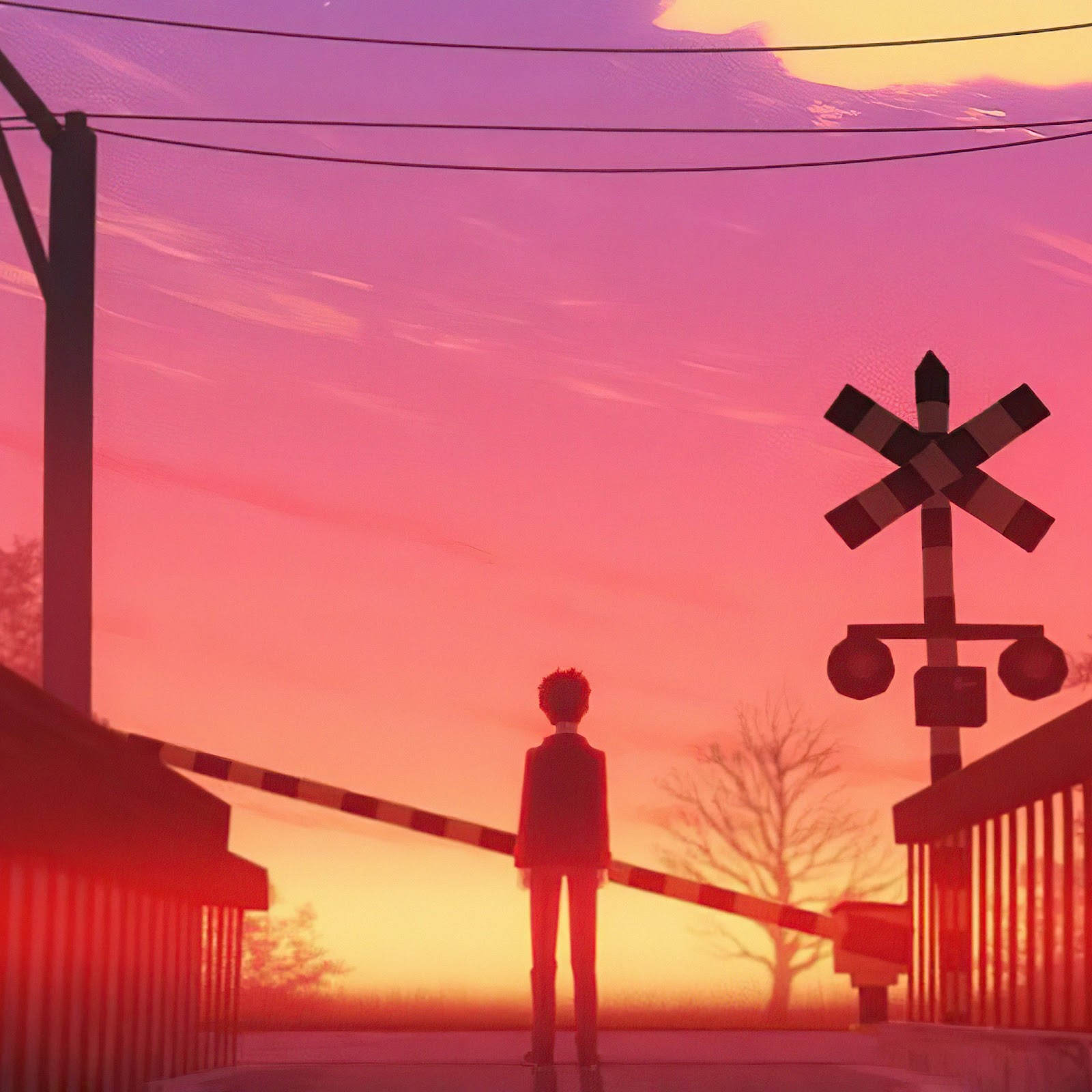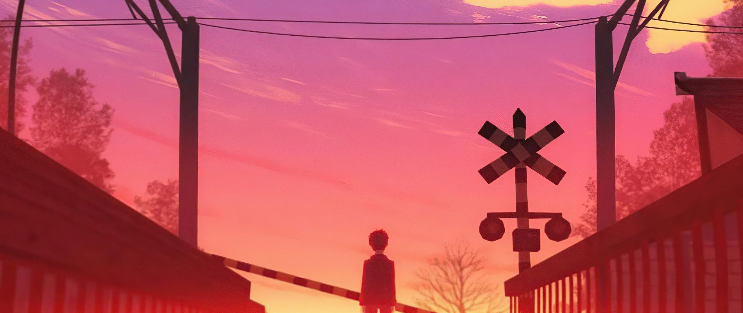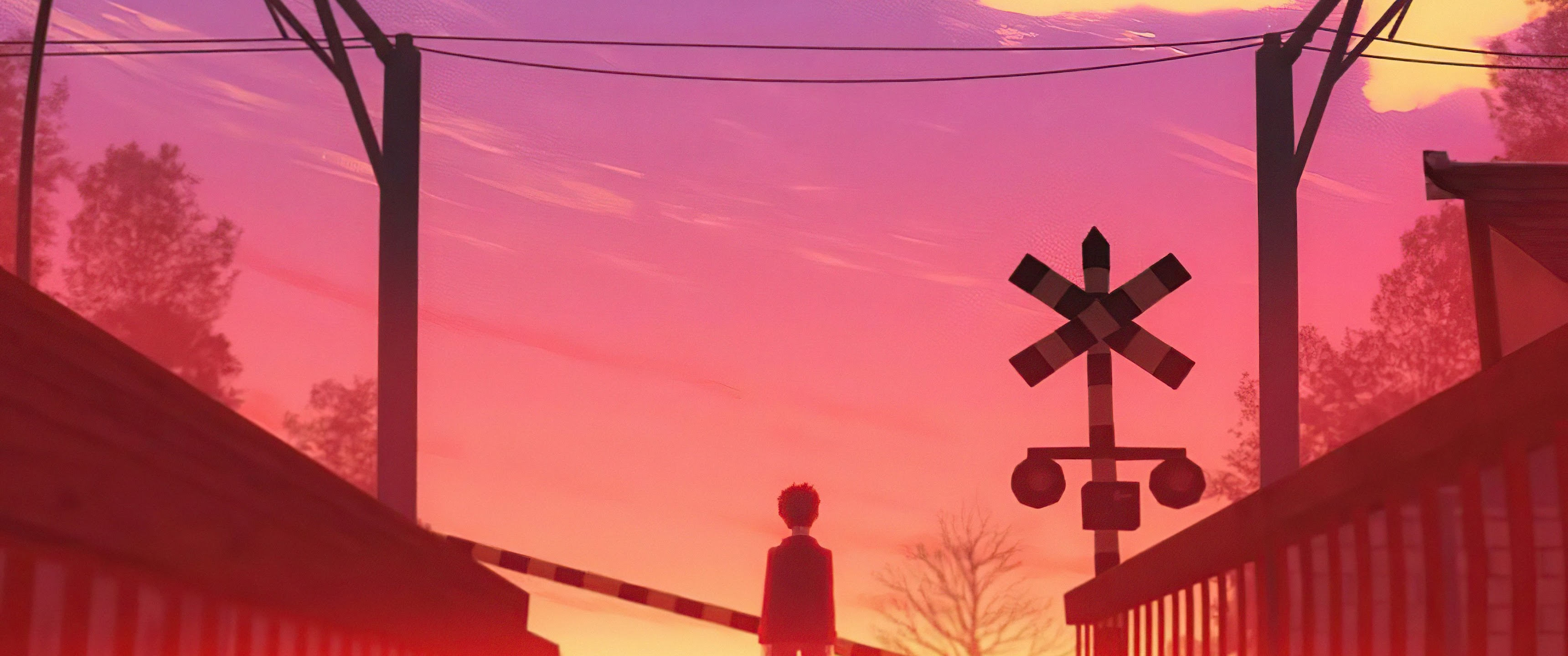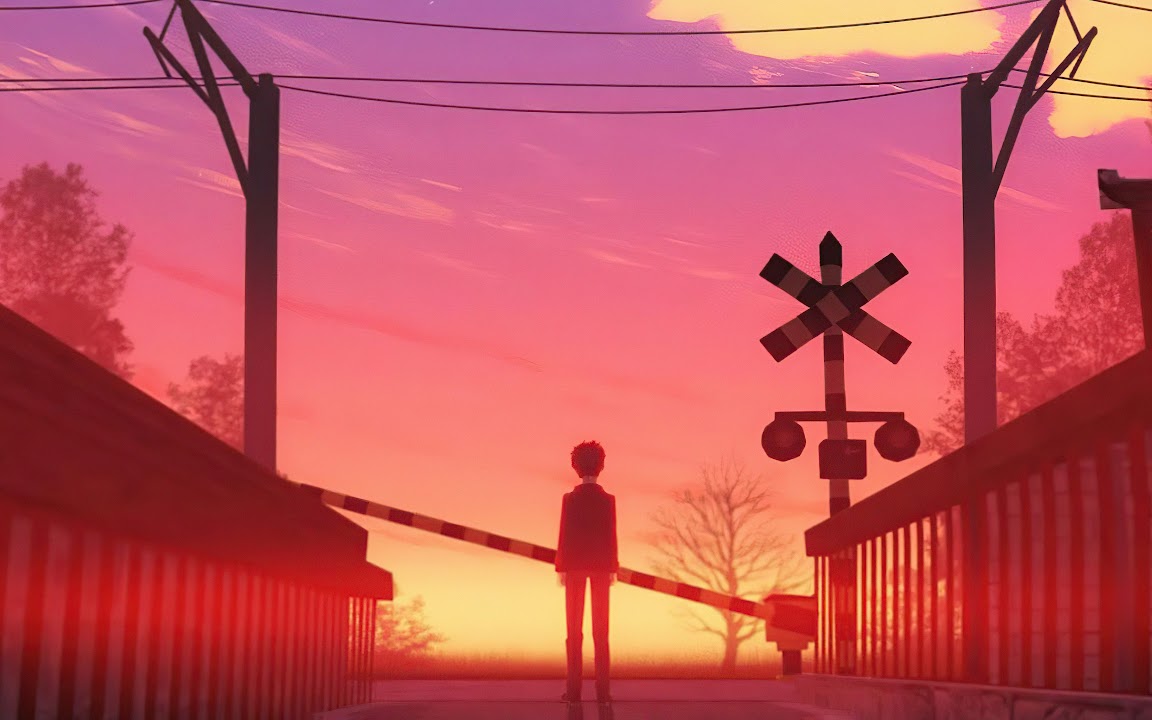 Anime, Railroad, Sunset, Crossing 4K Desktop Wallpaper