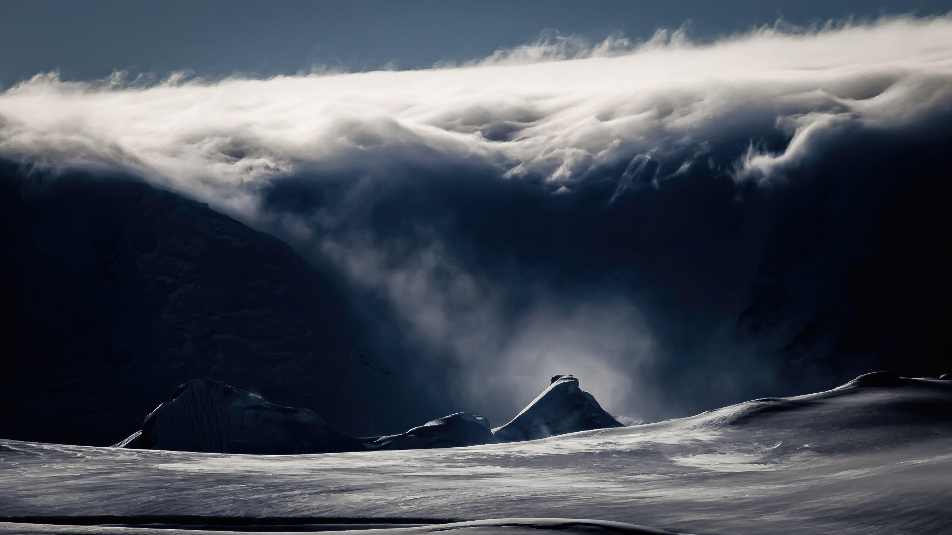 Antarctica Majesty Sailing Bark Europa Beneath Pouring Clouds Nature 4K Desktop Wallpaper