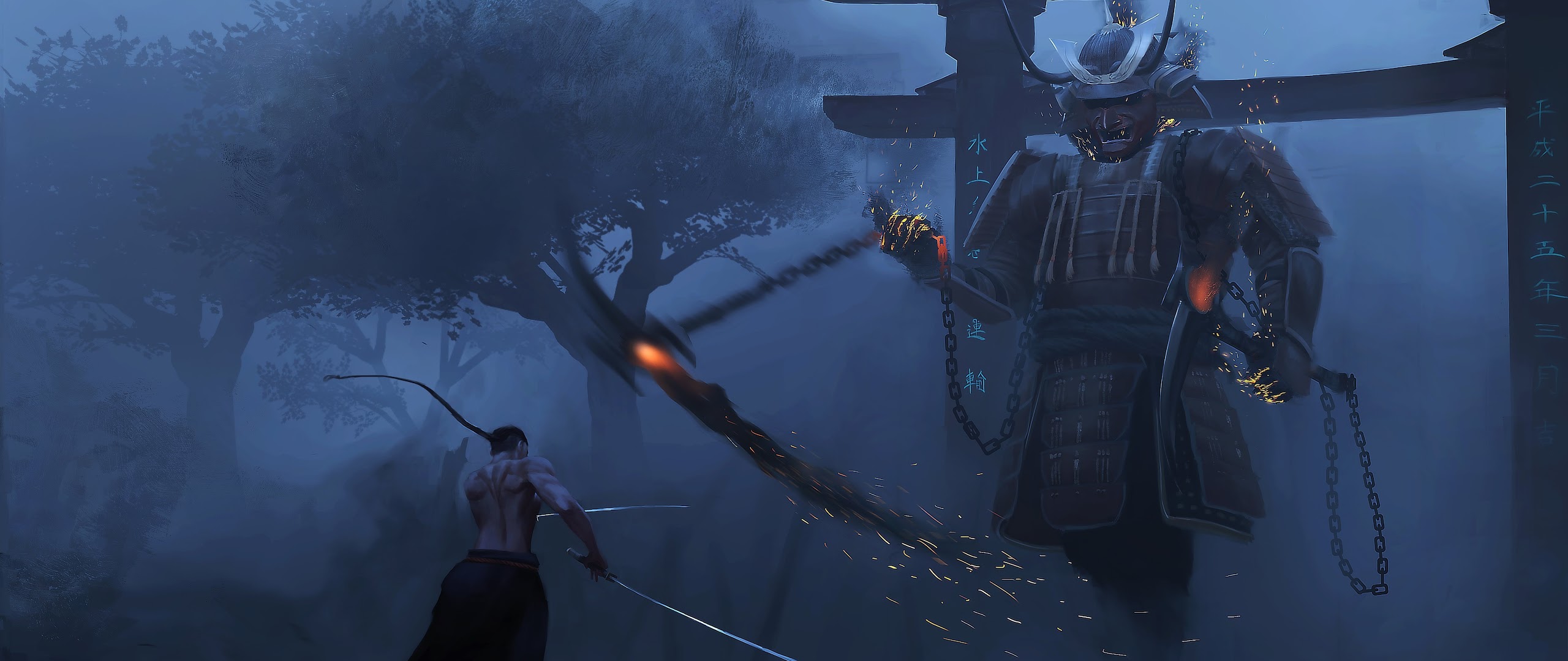 Armor, Katana, Men, Warrior, Environment 5K Desktop Wallpaper Background with a maximum resolution of 6000x3360 px.