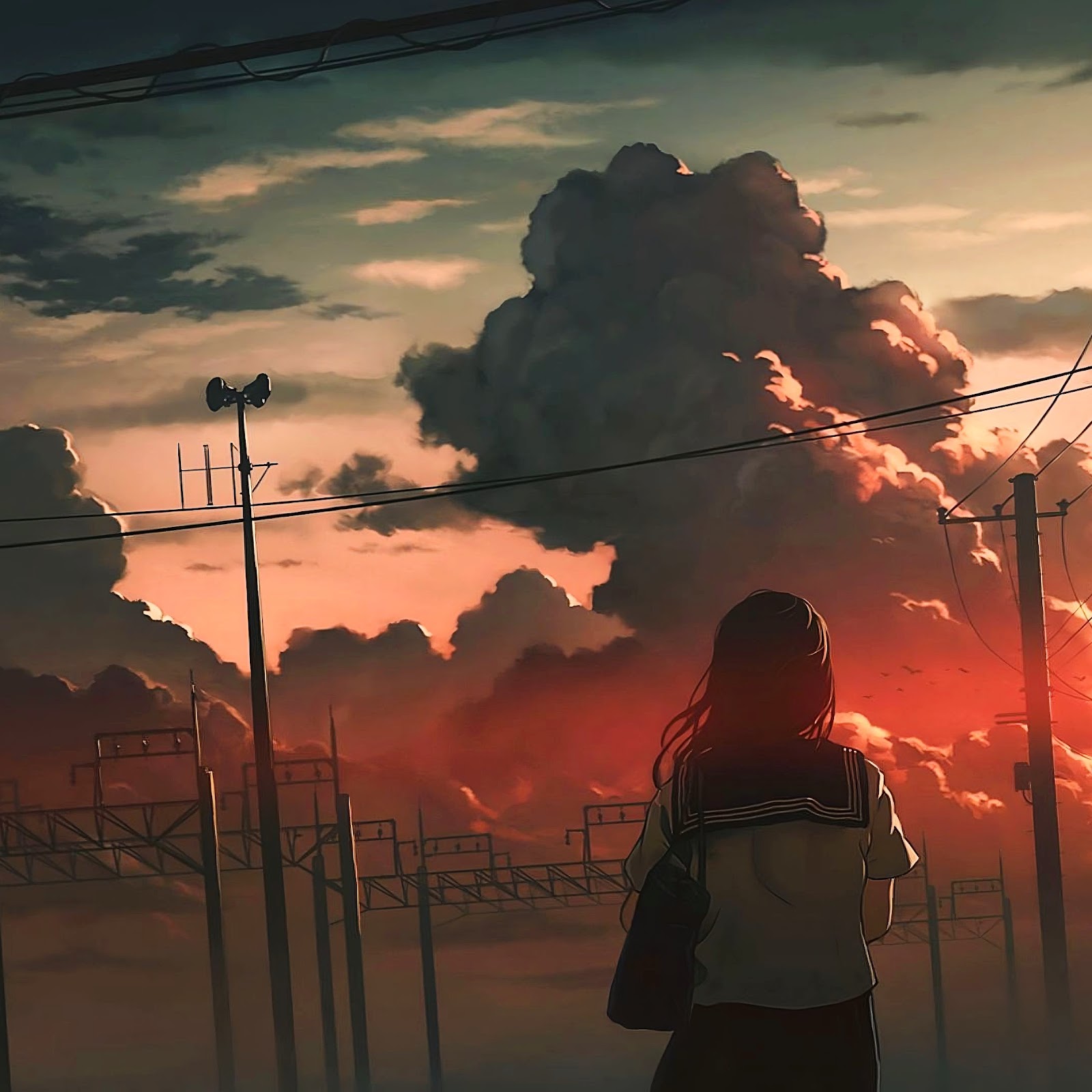 Artwork, Schoolgirl, Sunset, Anime Girls 4K Phone Wallpaper