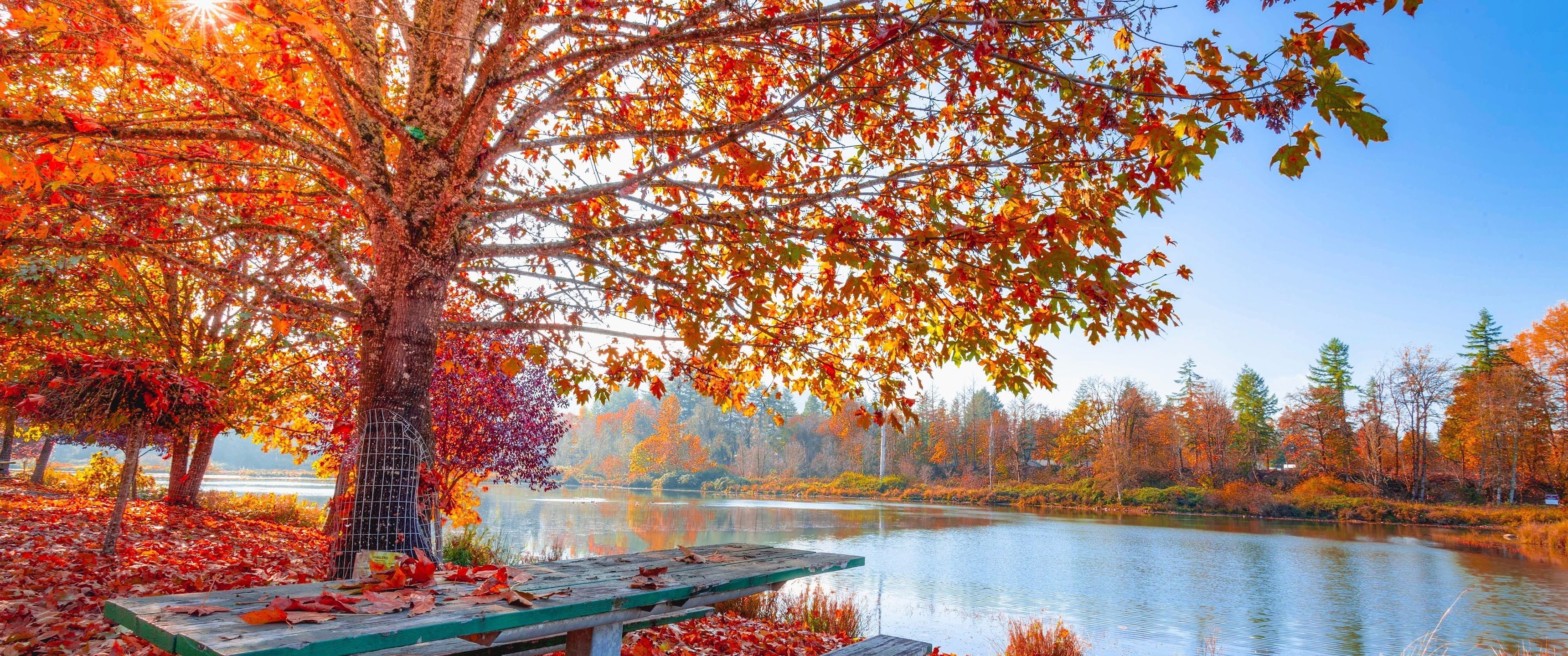 Autumn Fall 5K Desktop Wallpaper Background with a maximum resolution of 5600x3150 px.