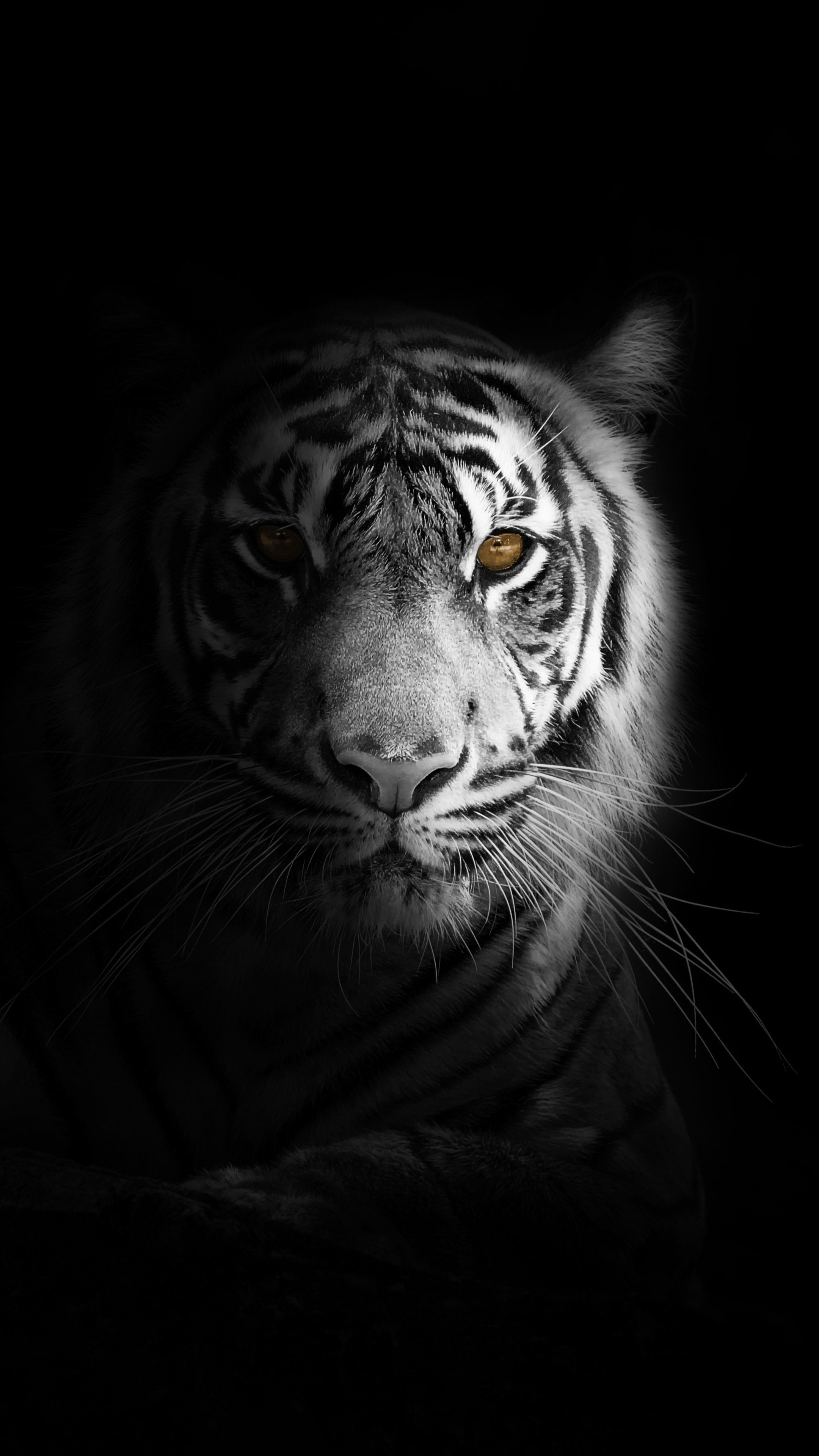 Tiger, Black and White, Portrait, Cat 4K iPhone Wallpaper Background [2160x3840] Free Download