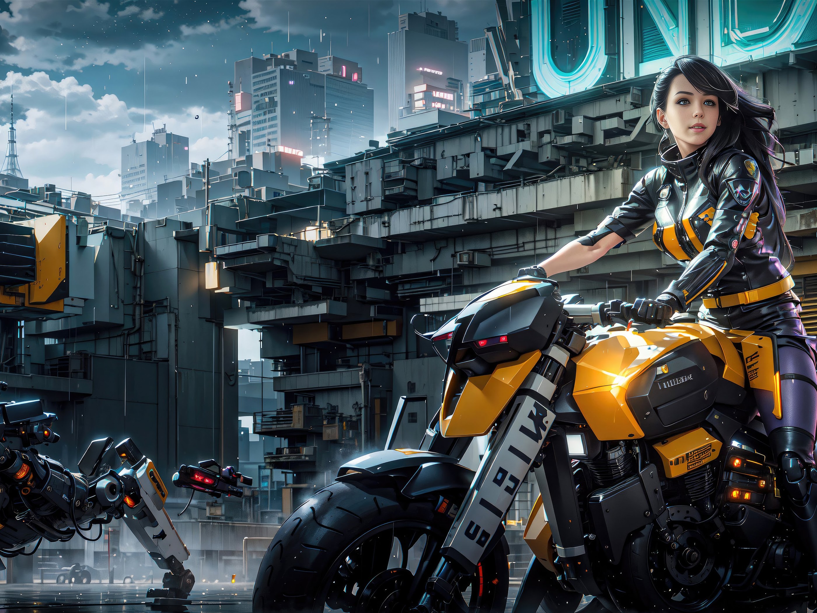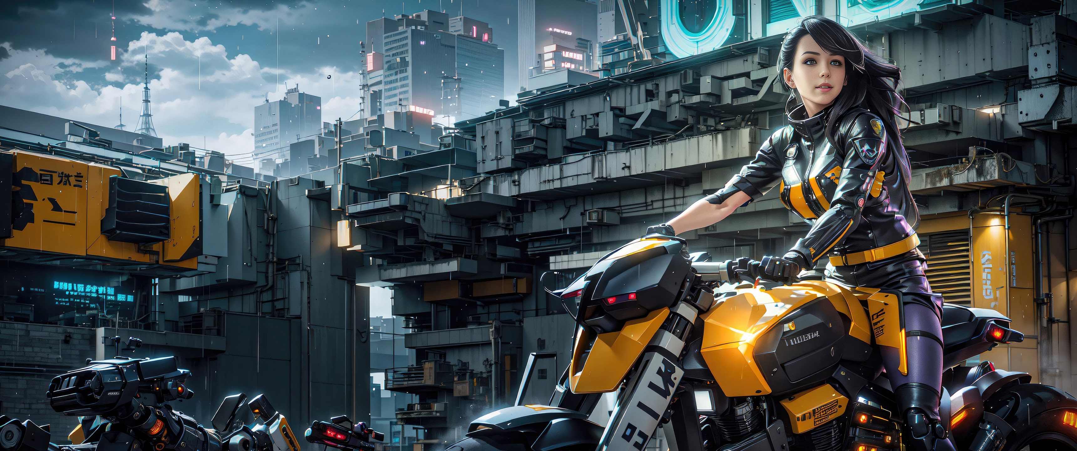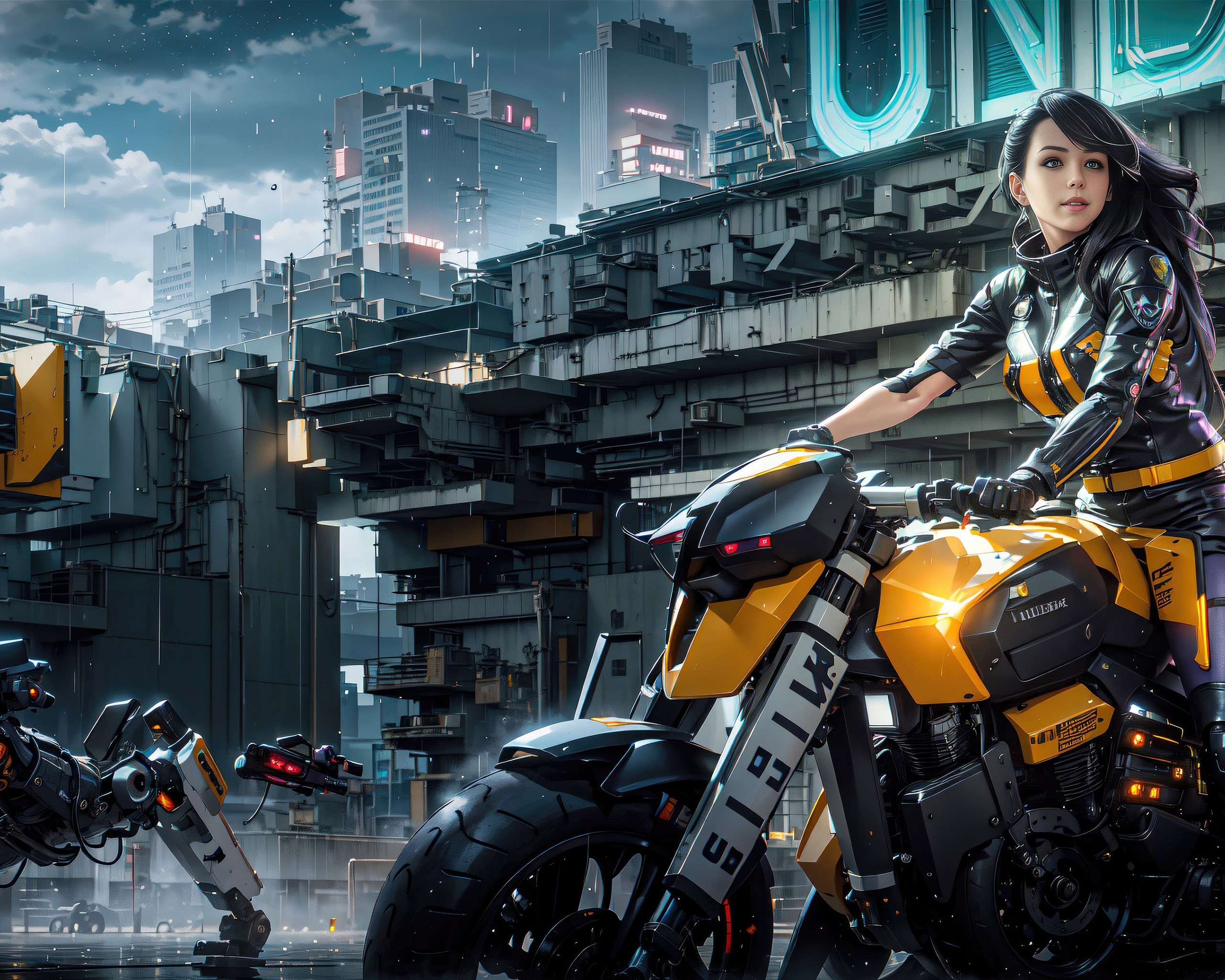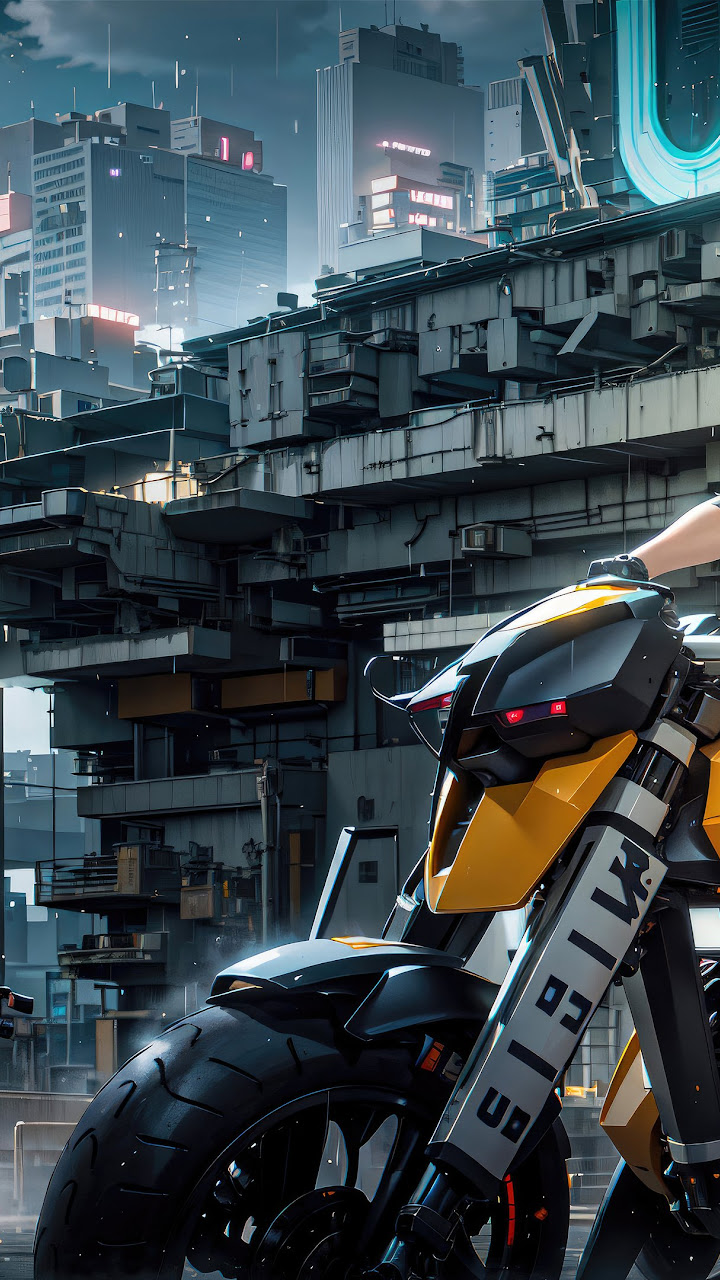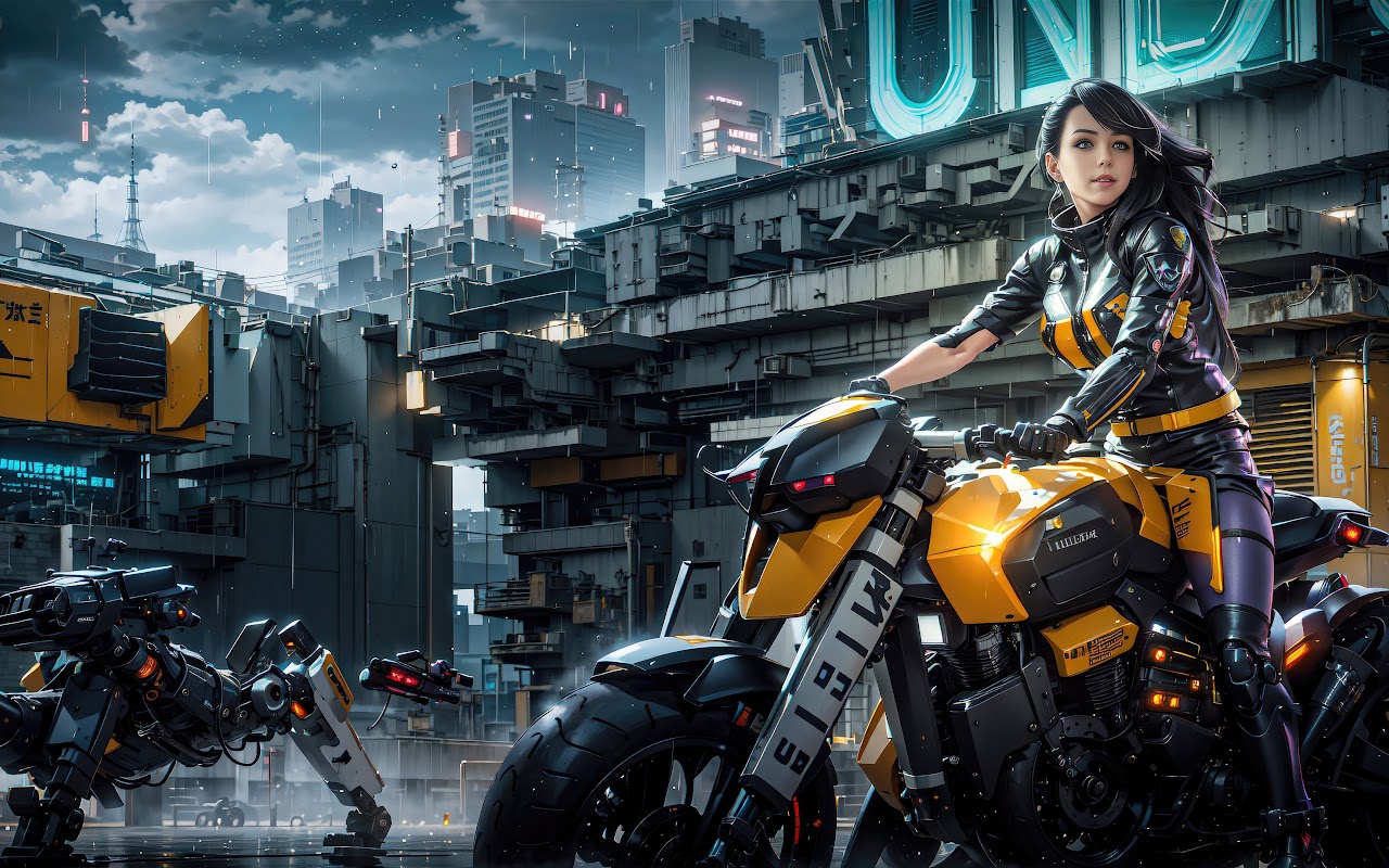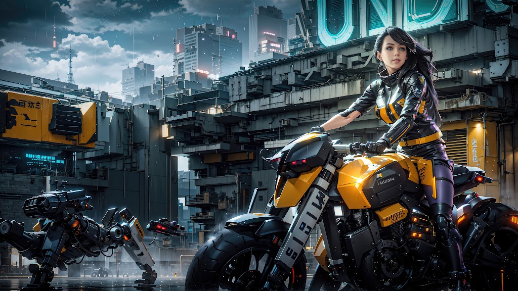 Cyberpunk, Motorcycle, Woman, Cityscape 4K Wallpaper Background [3840x2160]
