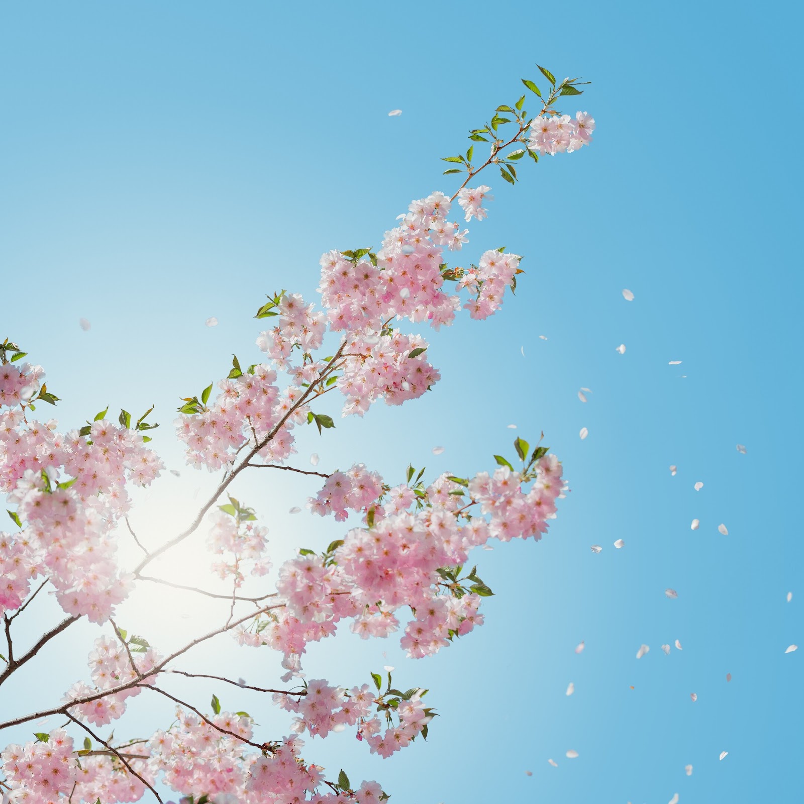 Cherry Blossom, Springtime, Bluesky, Petals 4K Desktop Wallpaper Background with a maximum resolution of 3840x2160 px.