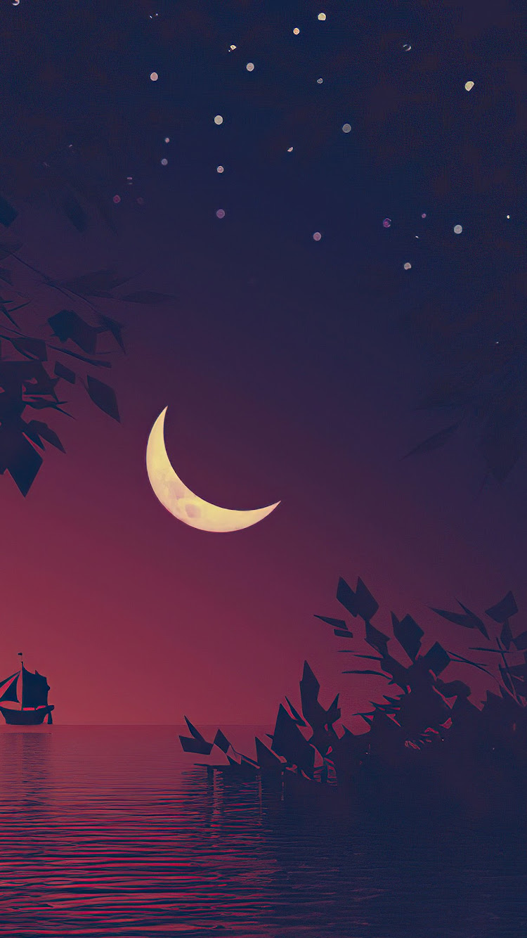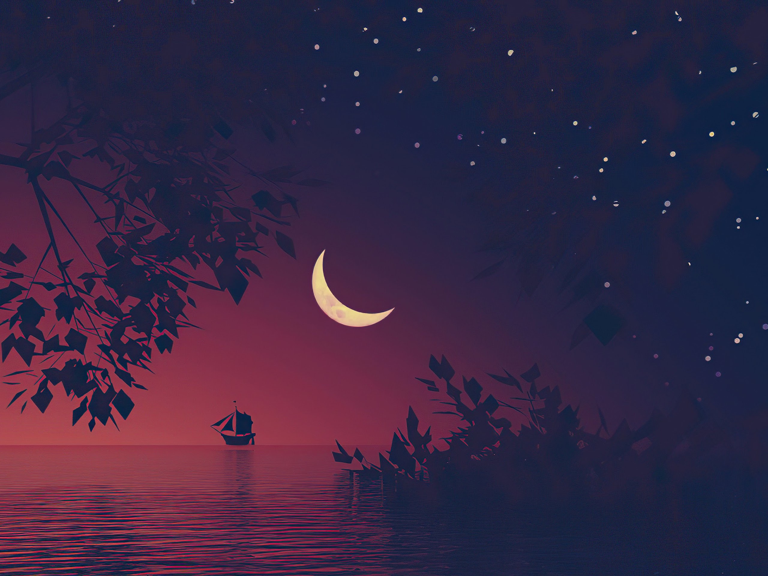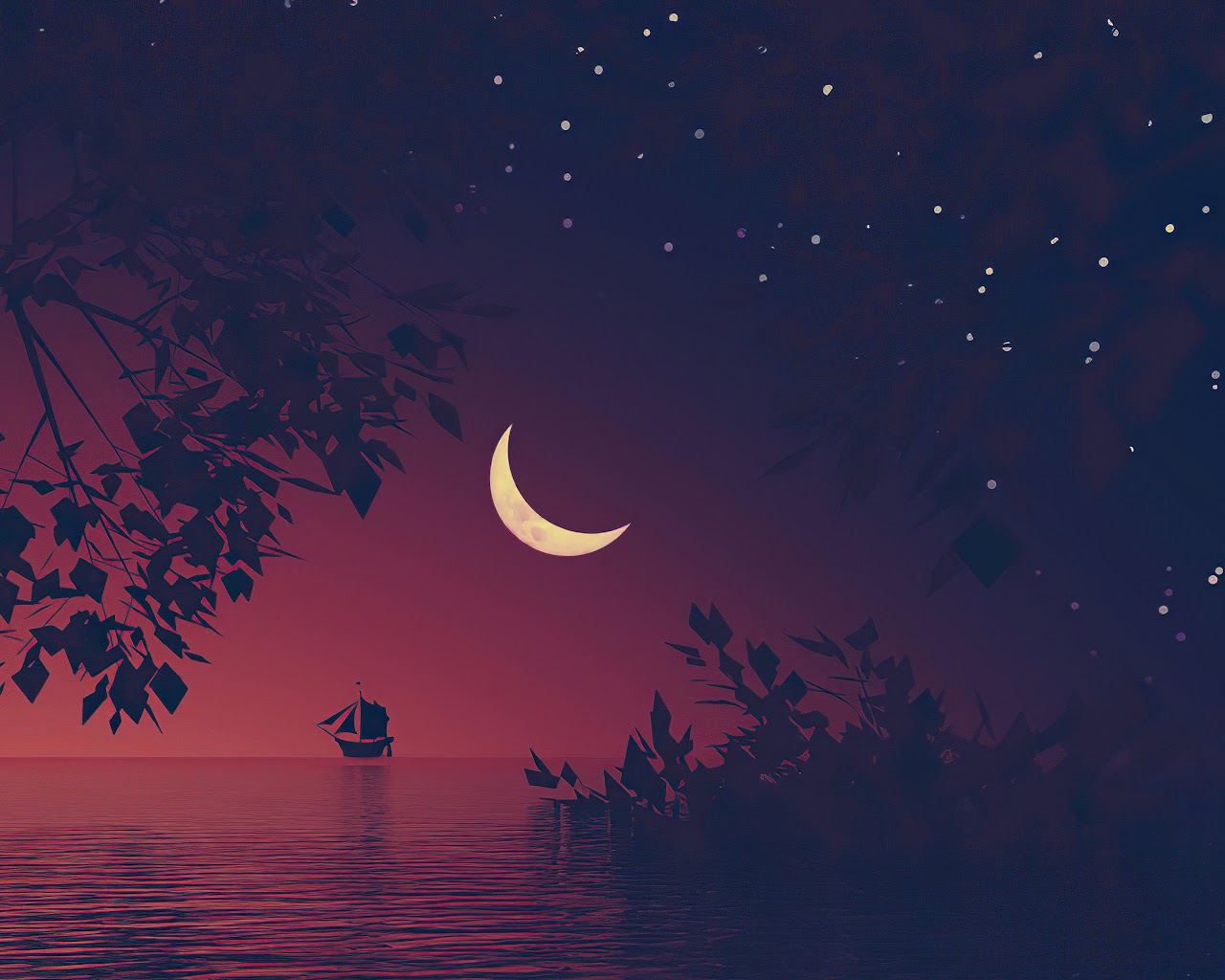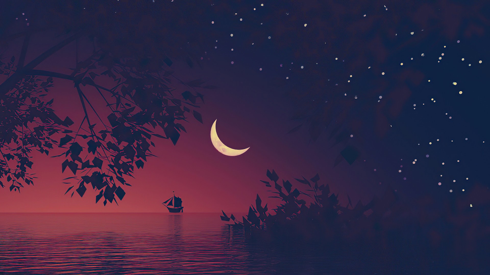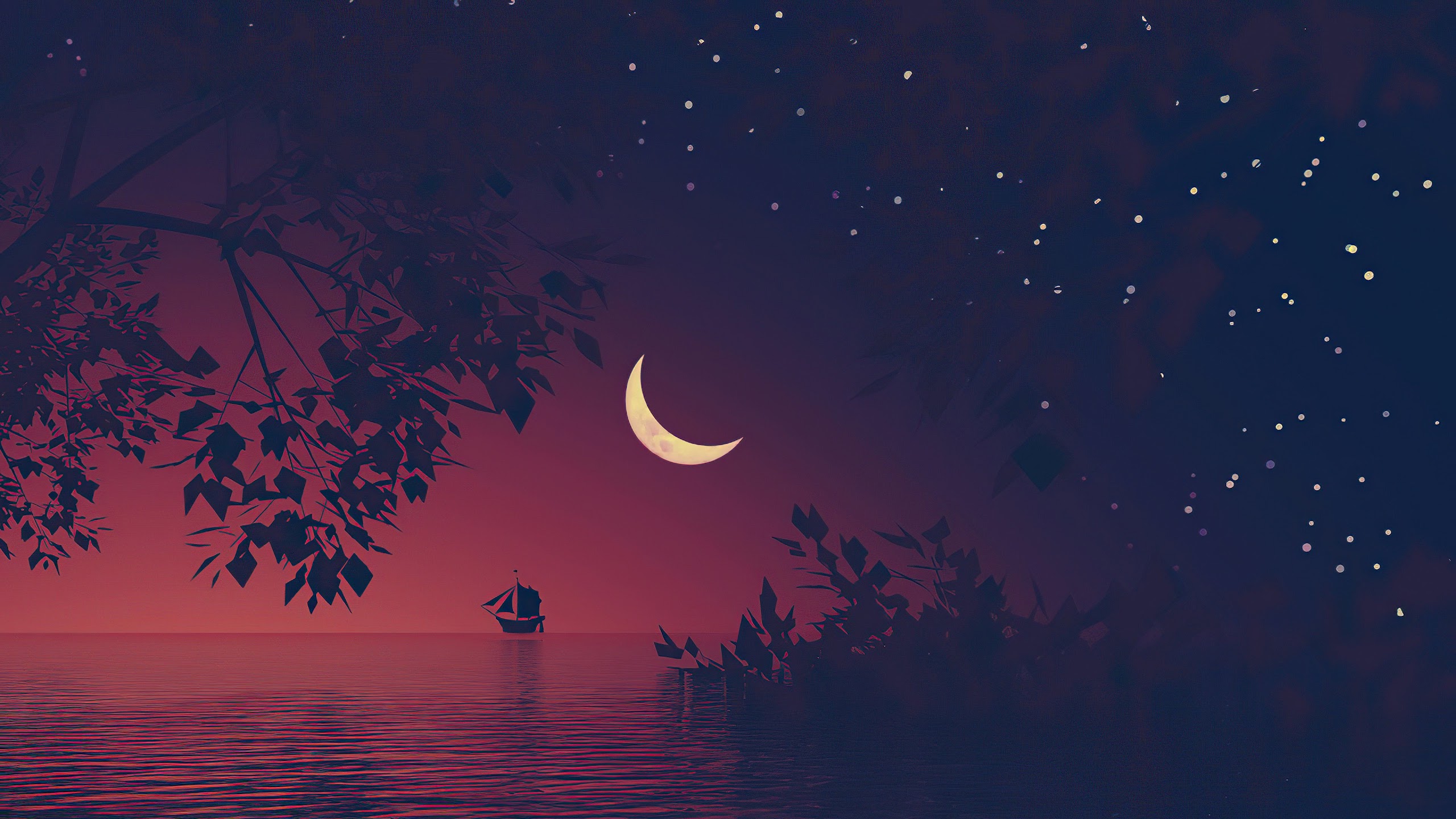 Moon, Stars, Ship, Night, Ocean 4K Desktop Wallpaper Background with a maximum resolution of 3840x2160 px.