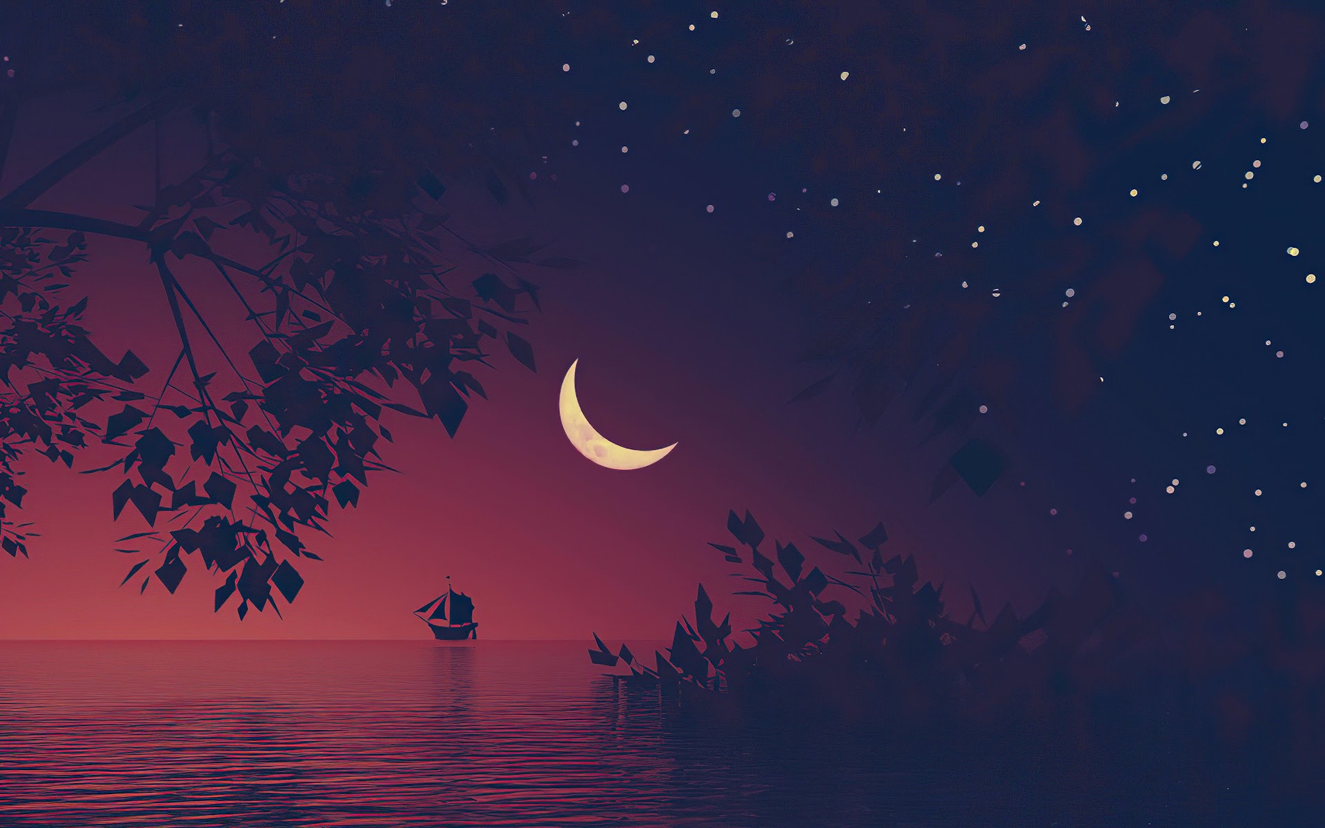 Moon, Stars, Ship, Night, Ocean 4K Desktop Wallpaper