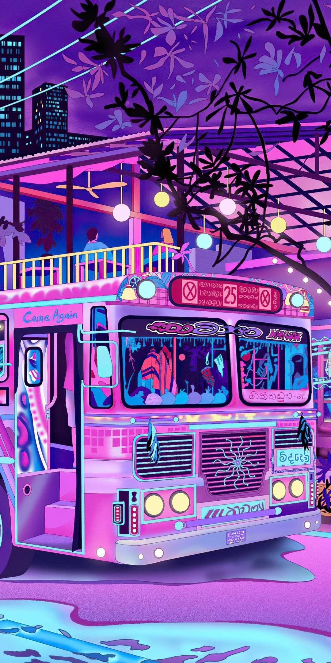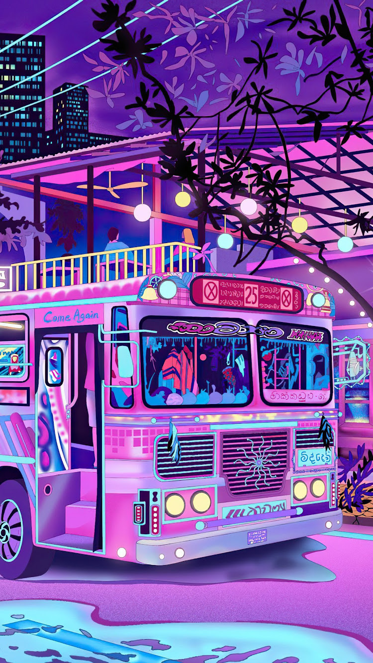 Bus Stop Synthwave 4K Desktop Wallpaper Background with a maximum resolution of 3840x2160 px.