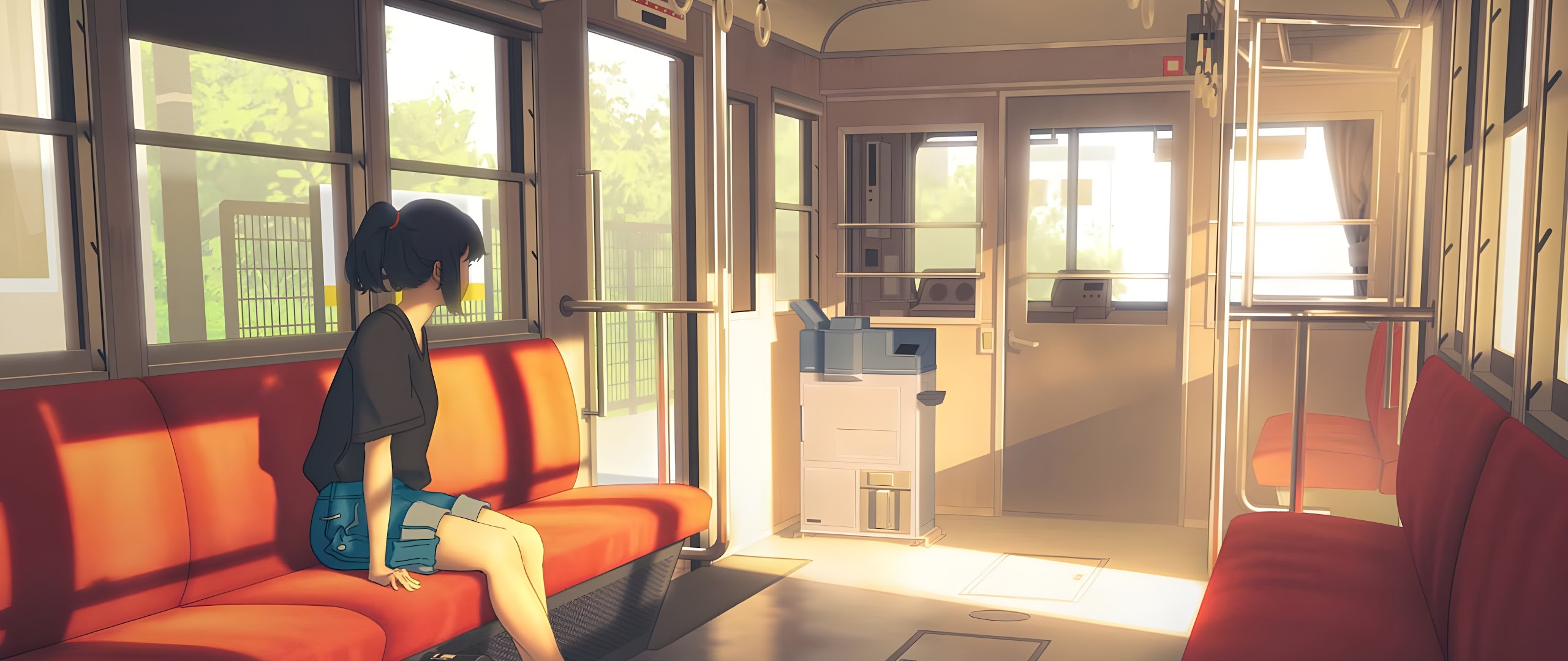 By.Sau, Train, Anime, Anime Girls 5K Desktop Wallpaper Background with a maximum resolution of 5760x3240 px.