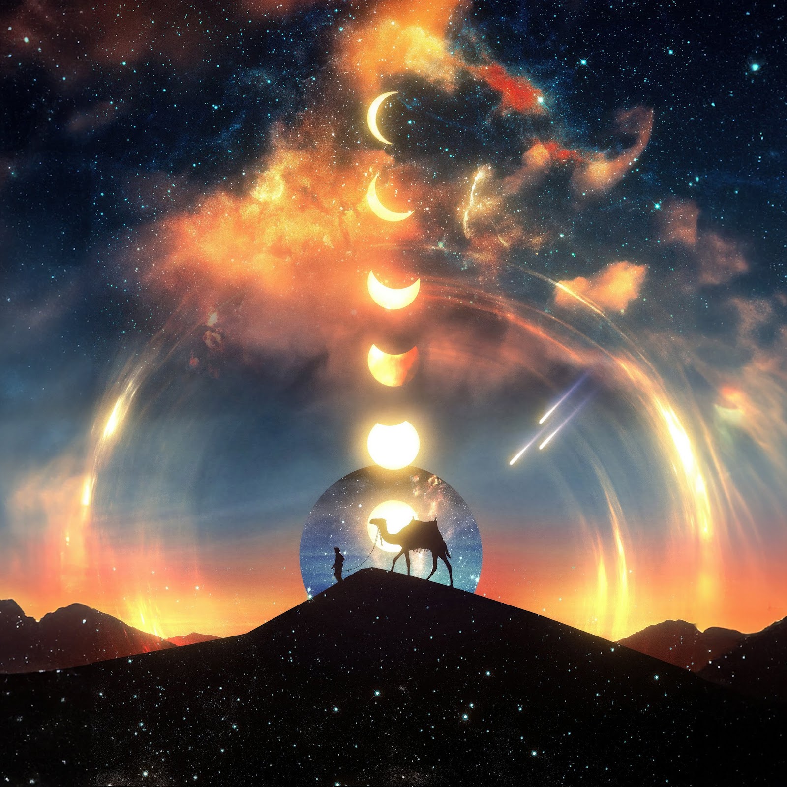 Eclipse, Camel, Silhouette, Nebula 4K Desktop Wallpaper Background with a maximum resolution of 3840x2160 px.